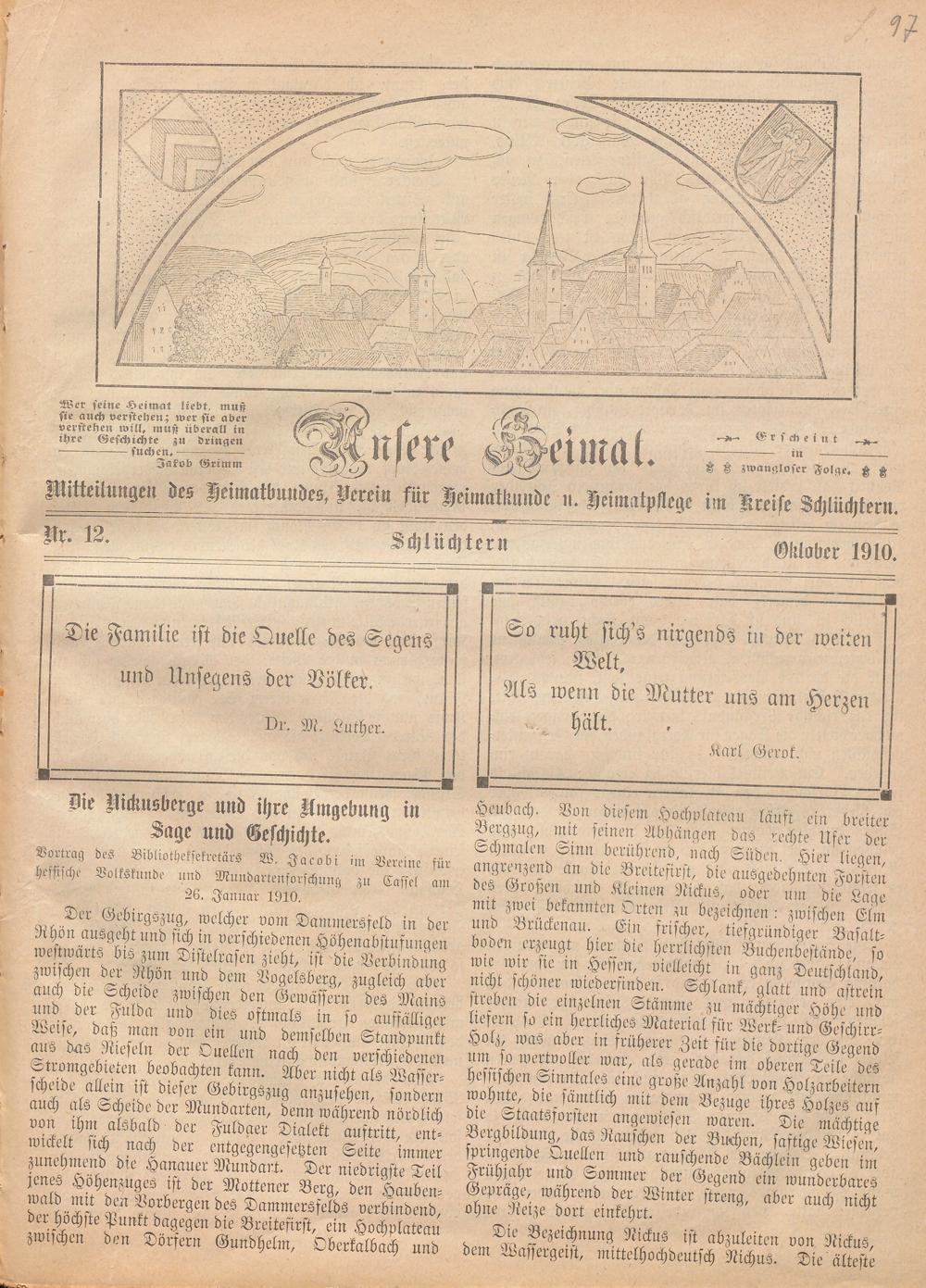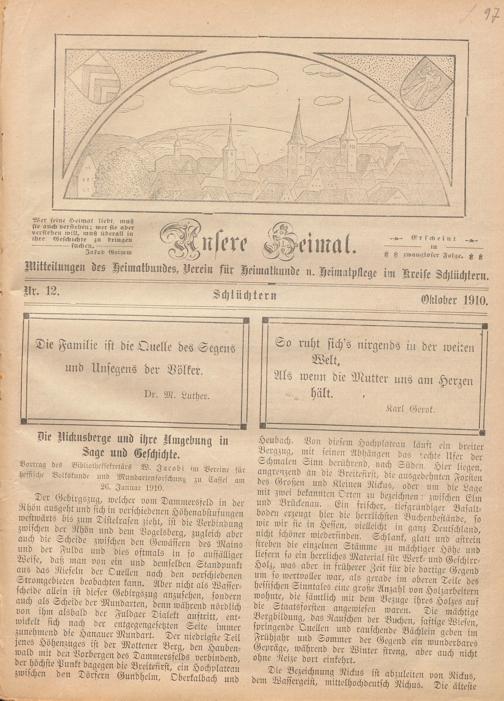Mitteilungen des Heimatbundes, Verein für Heimatkunde n. Heimatpflege im Kreise Schlächtern.