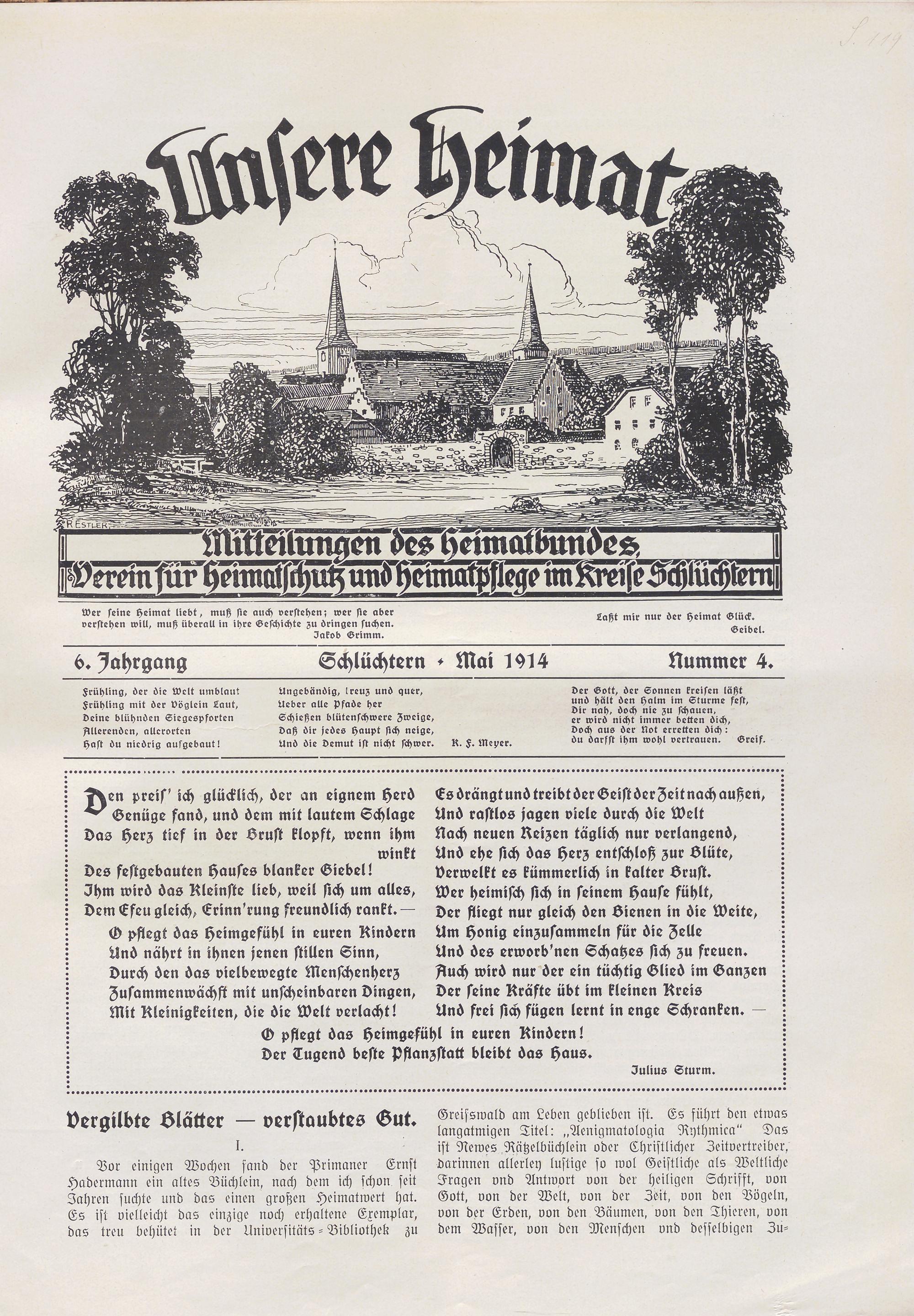 Wer seine Heimat liebt, muß sie auch verstehen; wer sie aber verstehen will, muß überall in ihre Geschichte zu bringen suchen. Jakob Grimm.