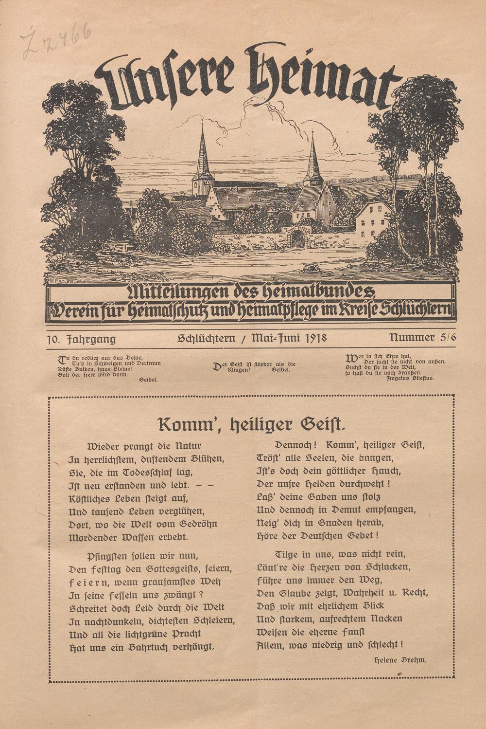 Pfingsten sollen wir nun, Den festtag den Gottesgeists, feiern, feiern, wenn grausamstes Weh Jn seine fesseln uns zwängt? Schreitet doch Leid durch die Welt Jn nachtdunkeln, dichtesten Schleiern, Und all die lichtgrüne Pracht trat uns ein Bahrtuch verhängt.