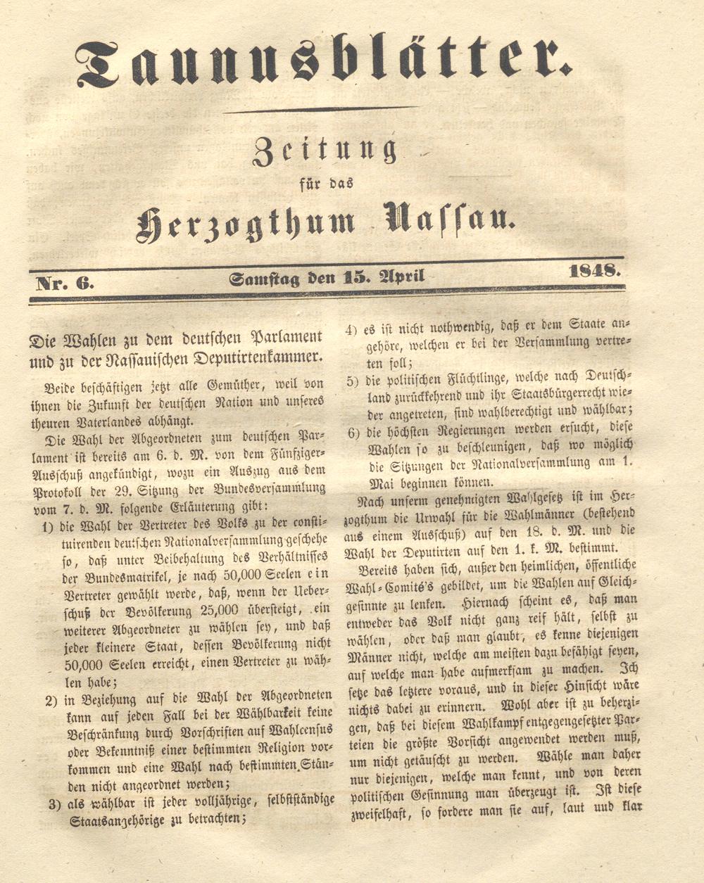Die Wahlen zu dem deutschen Parlament und zu der Nassauischen Deputirtenkammer.