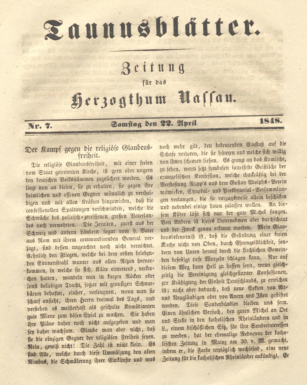 IVr. 7. Somstag den TT. April 1848.