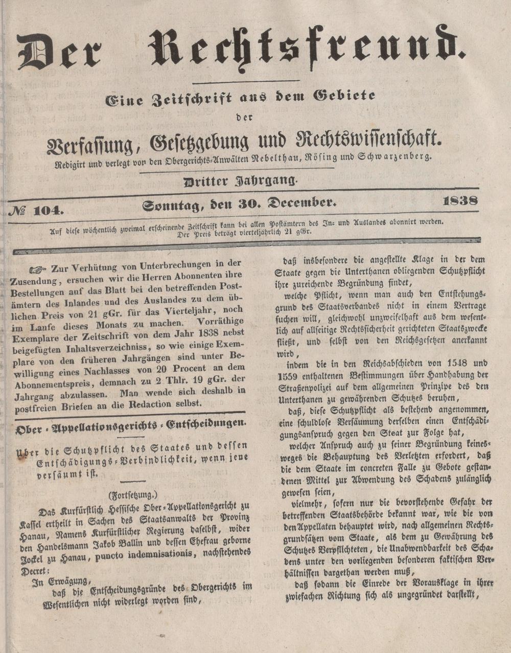 Der Rechtsfreund. 1836-1839