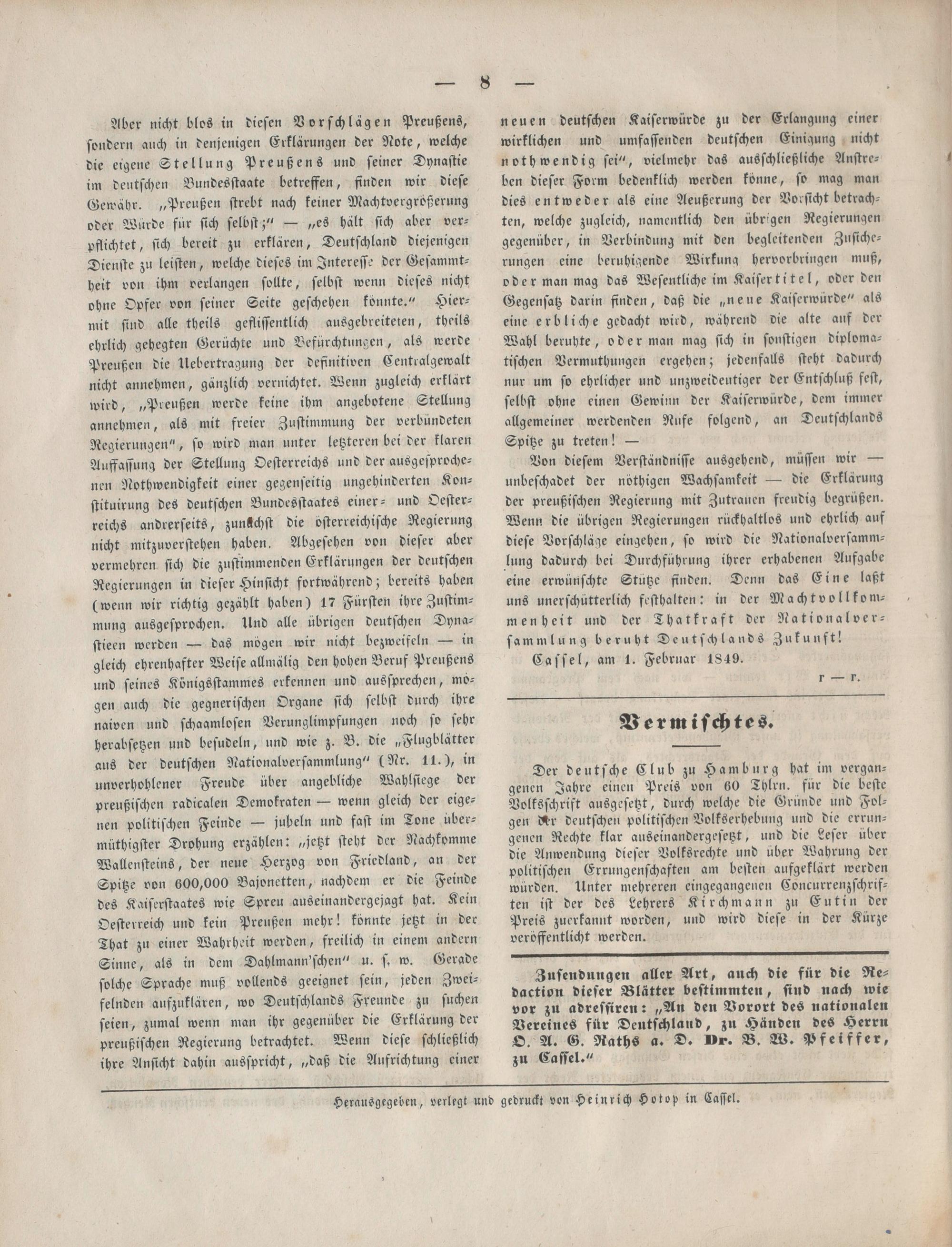 Blätter des Nationalen Vereins für Deutschland. 1849-1849