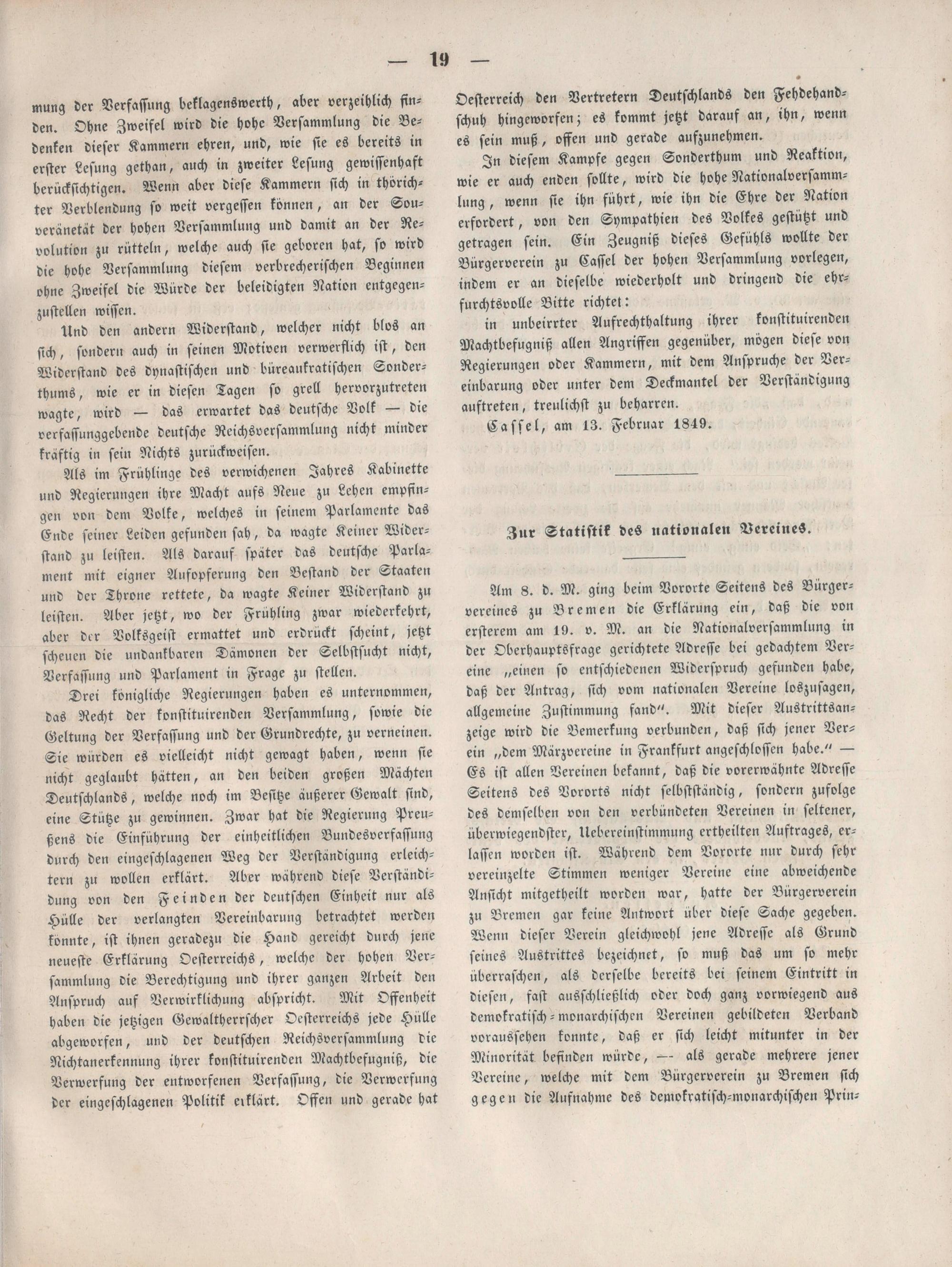 Blätter des Nationalen Vereins für Deutschland. 1849-1849