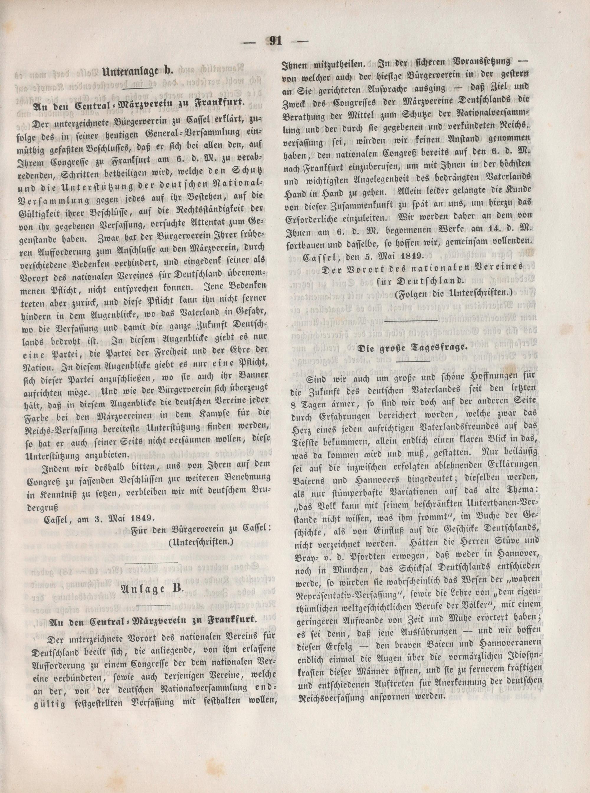 Blätter des Nationalen Vereins für Deutschland. 1849-1849