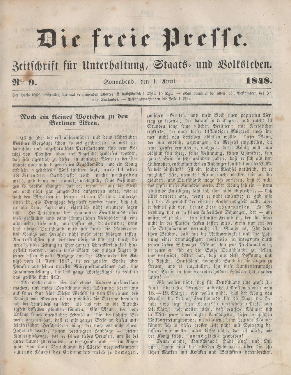 Die Freie Presse. 1848-1848