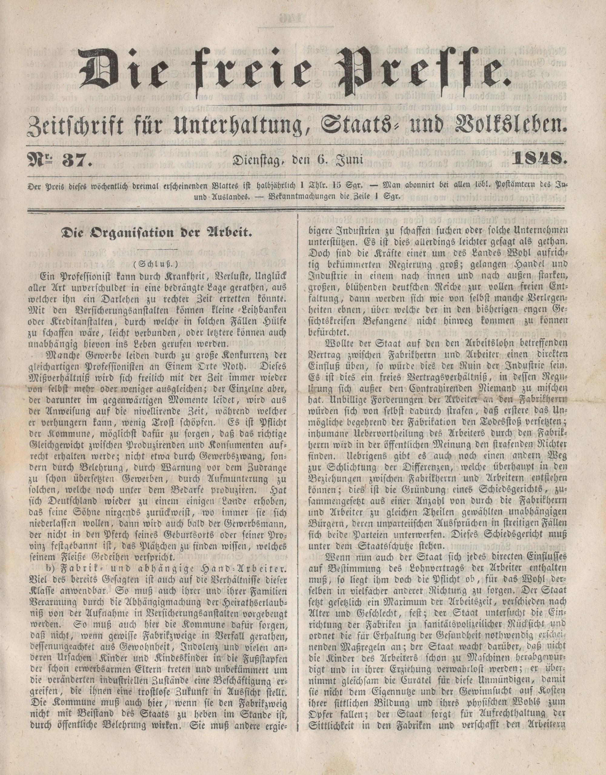 Die Freie Presse. 1848-1848
