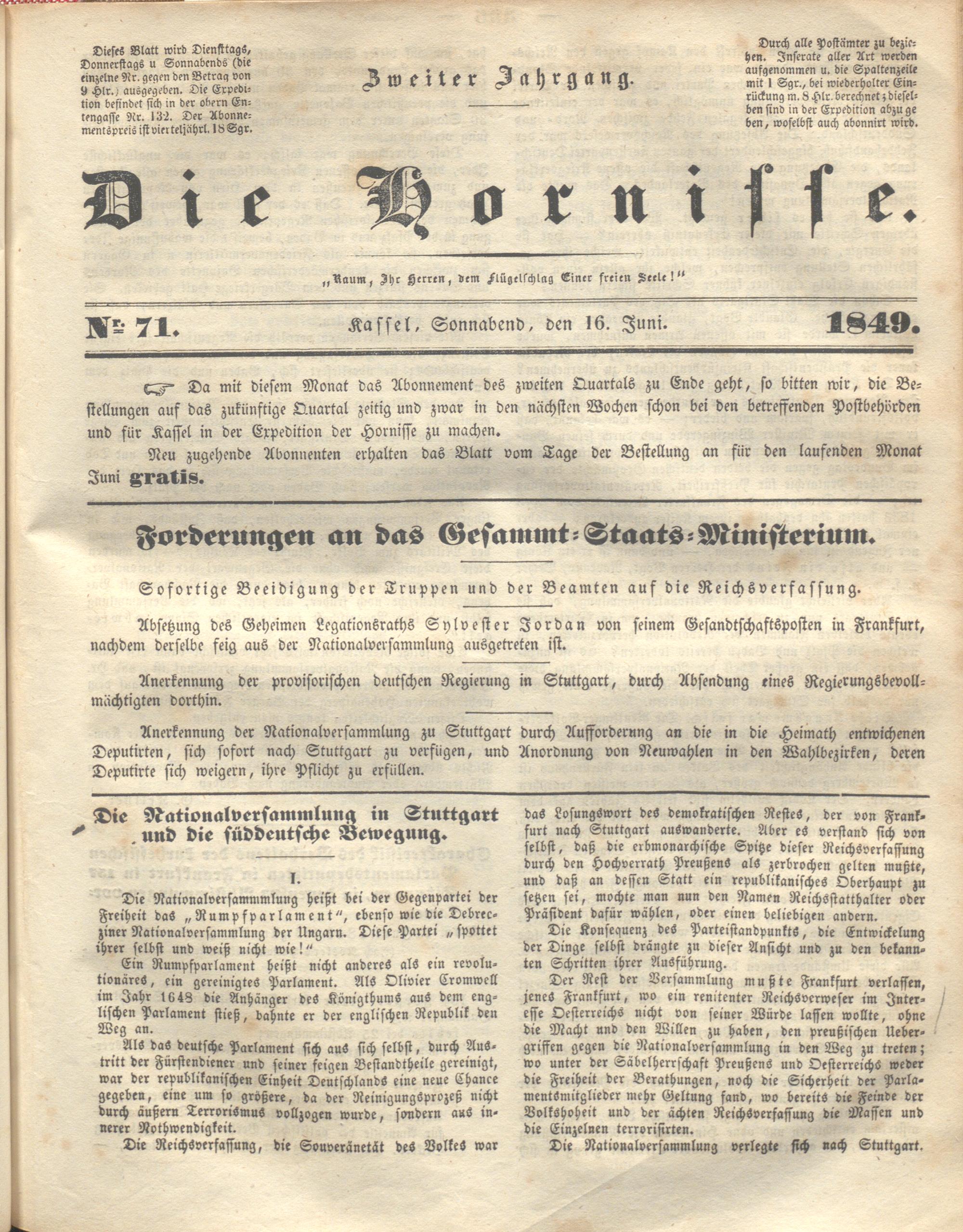 Die Hornisse. 1848-1850