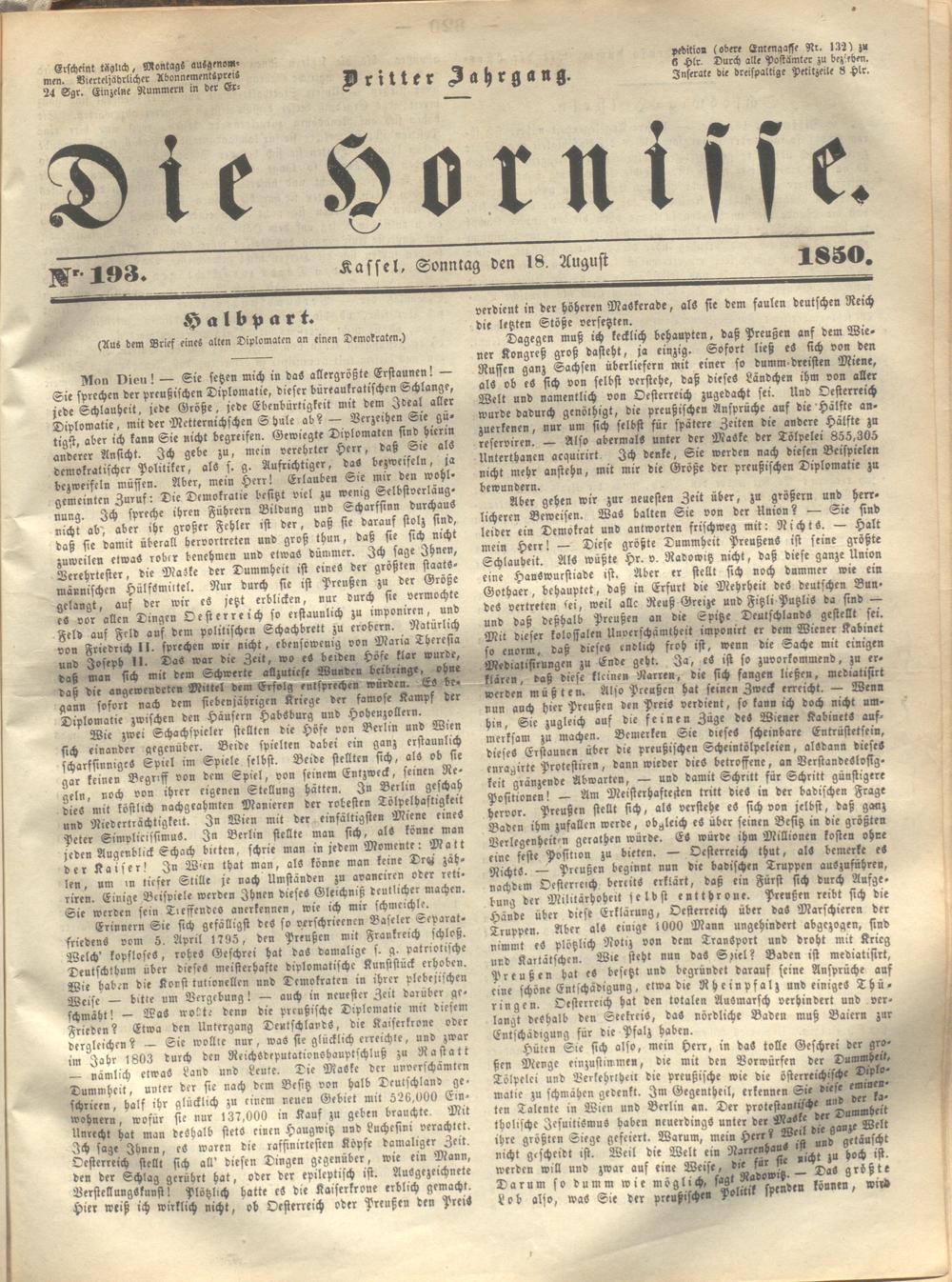 Die Hornisse. 1848-1850
