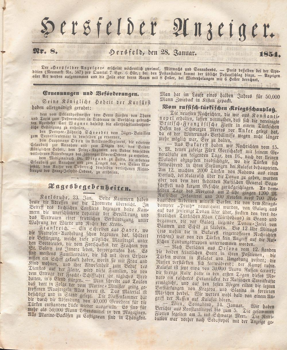 Hersfelder Anzeiger. 1854-1866