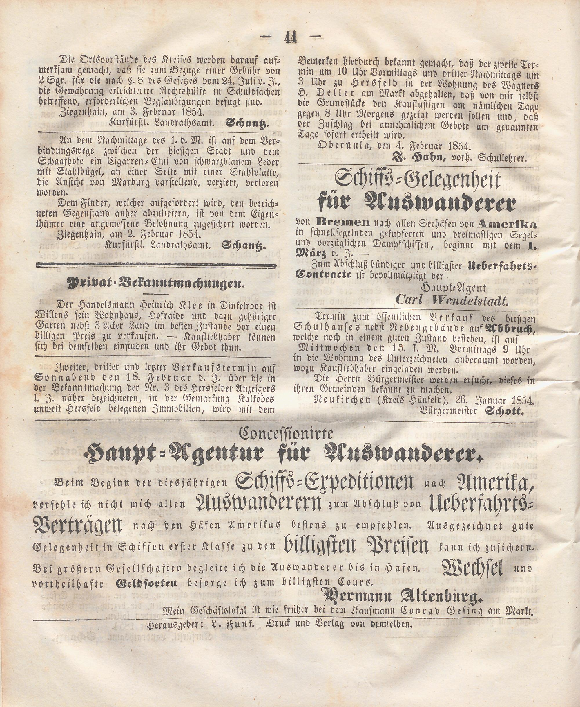 Hersfelder Anzeiger. 1854-1866
