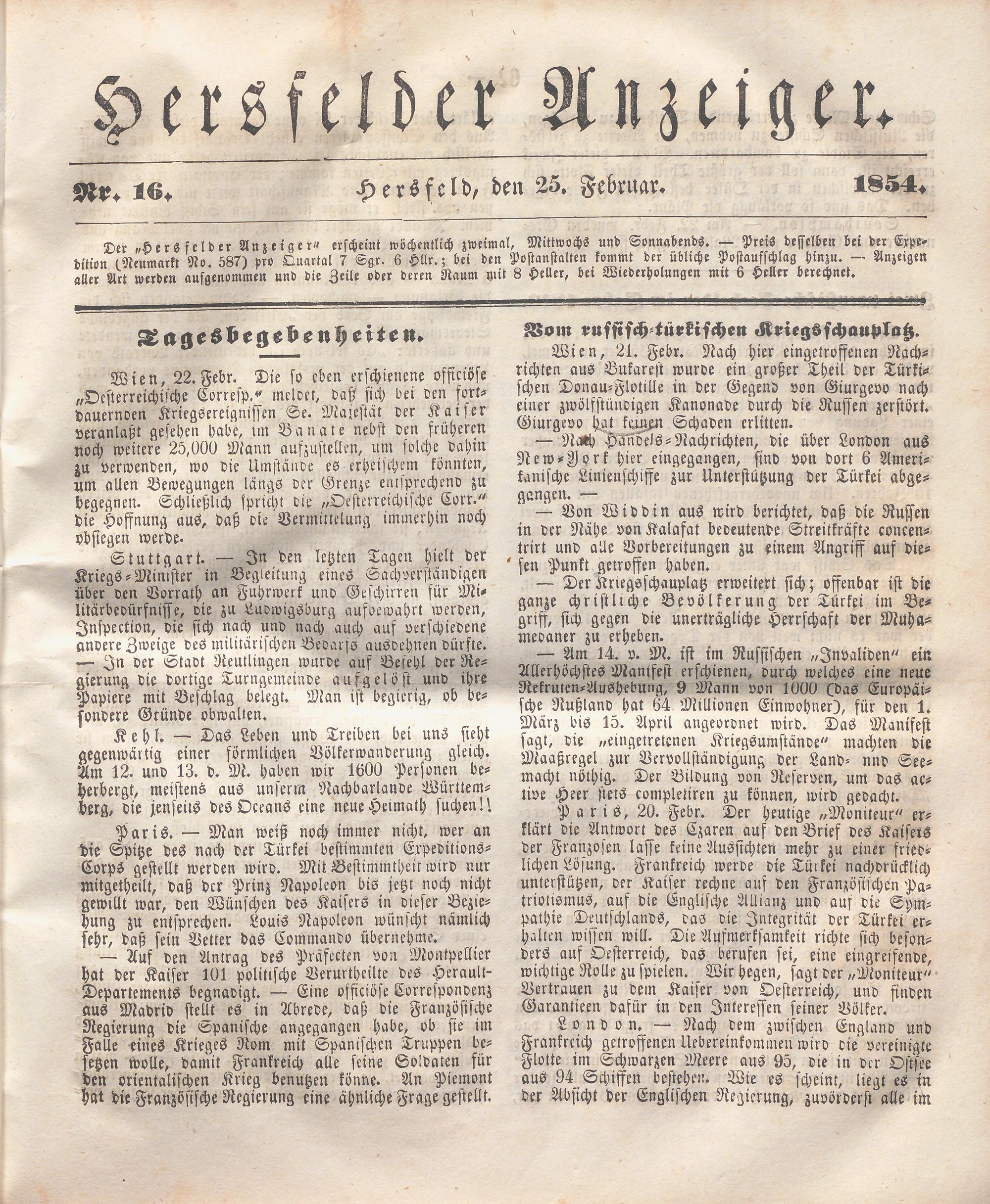 Hersfelder Anzeiger. 1854-1866