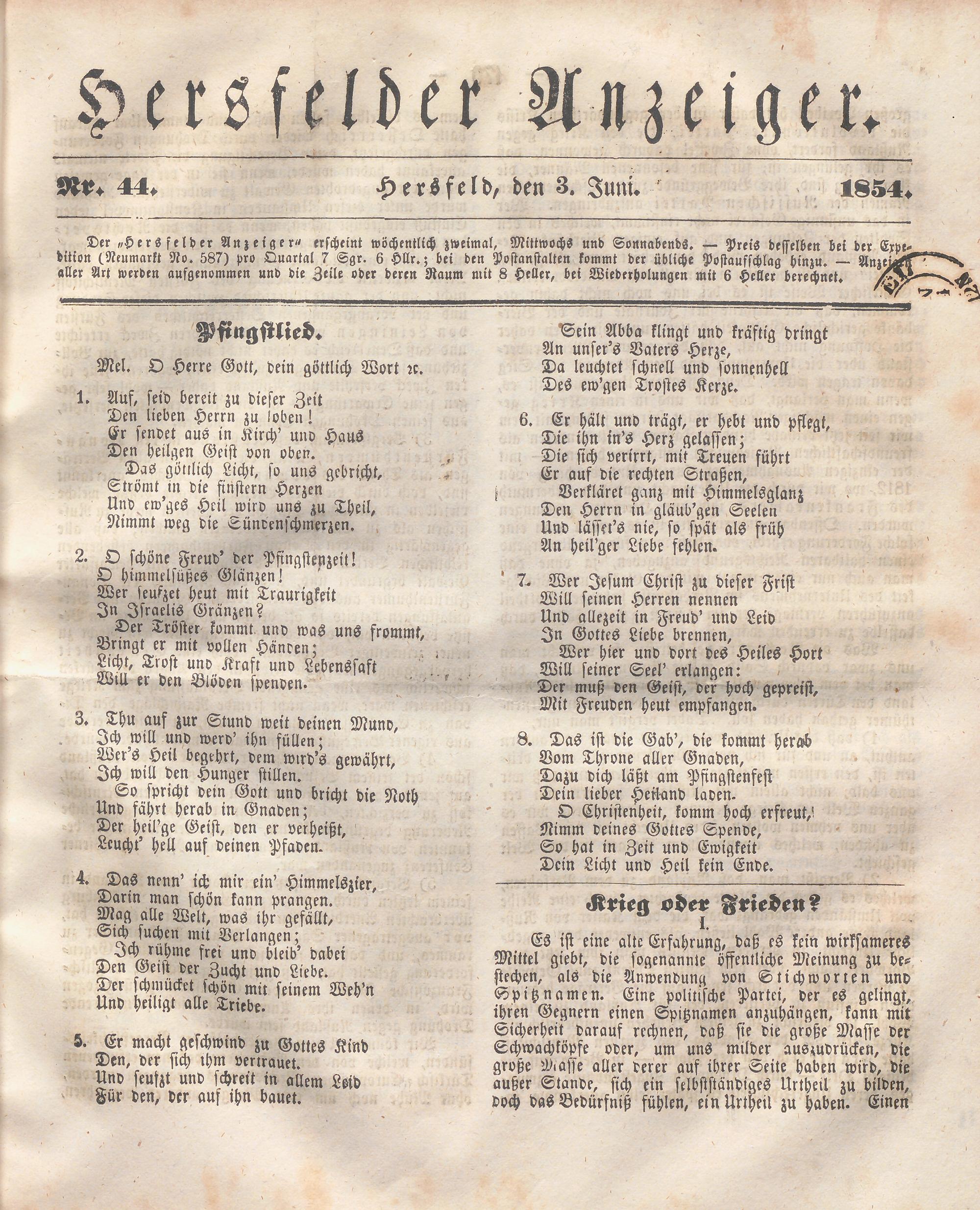 Hersfelder Anzeiger. 1854-1866