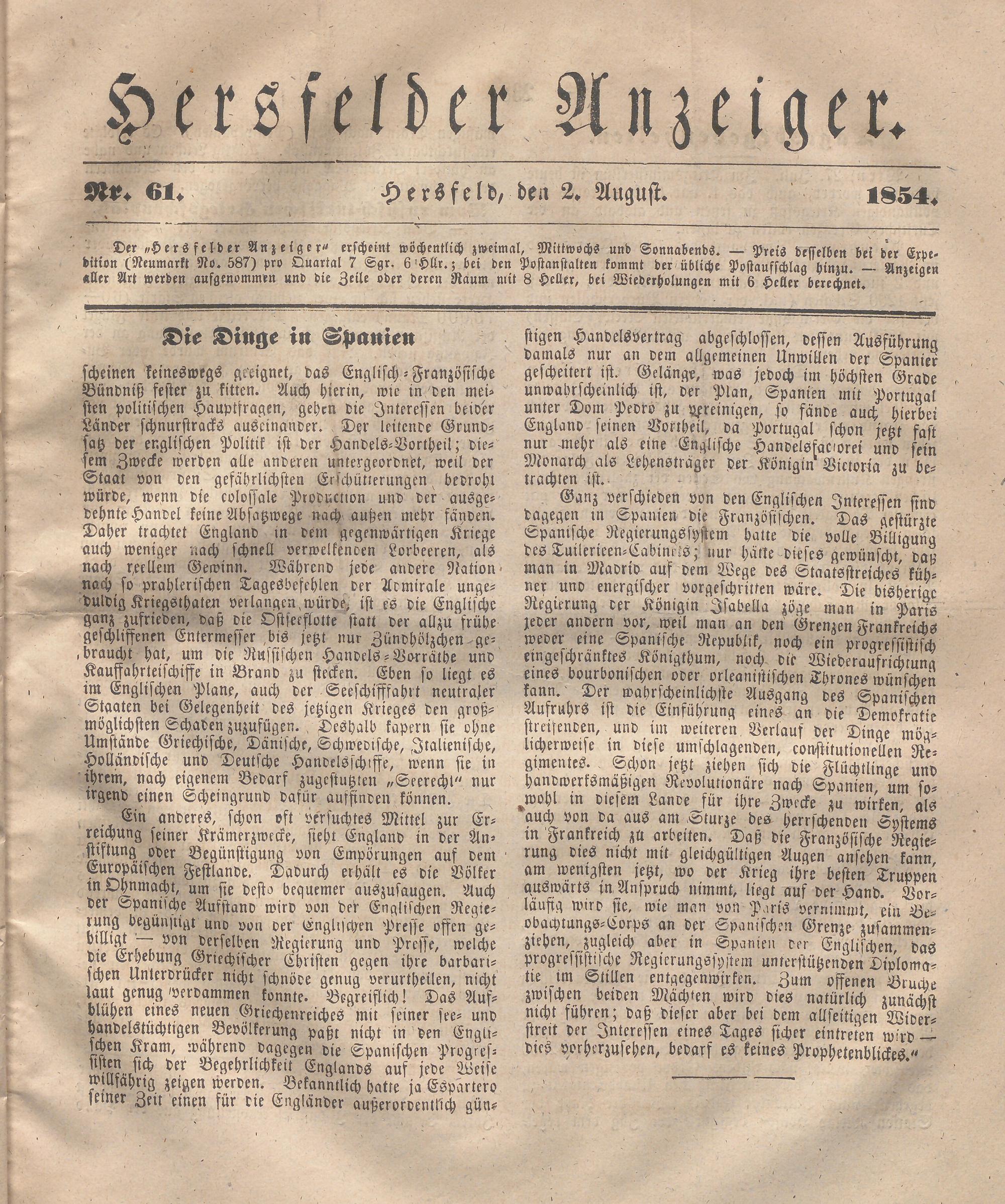 Hersfelder Anzeiger. 1854-1866