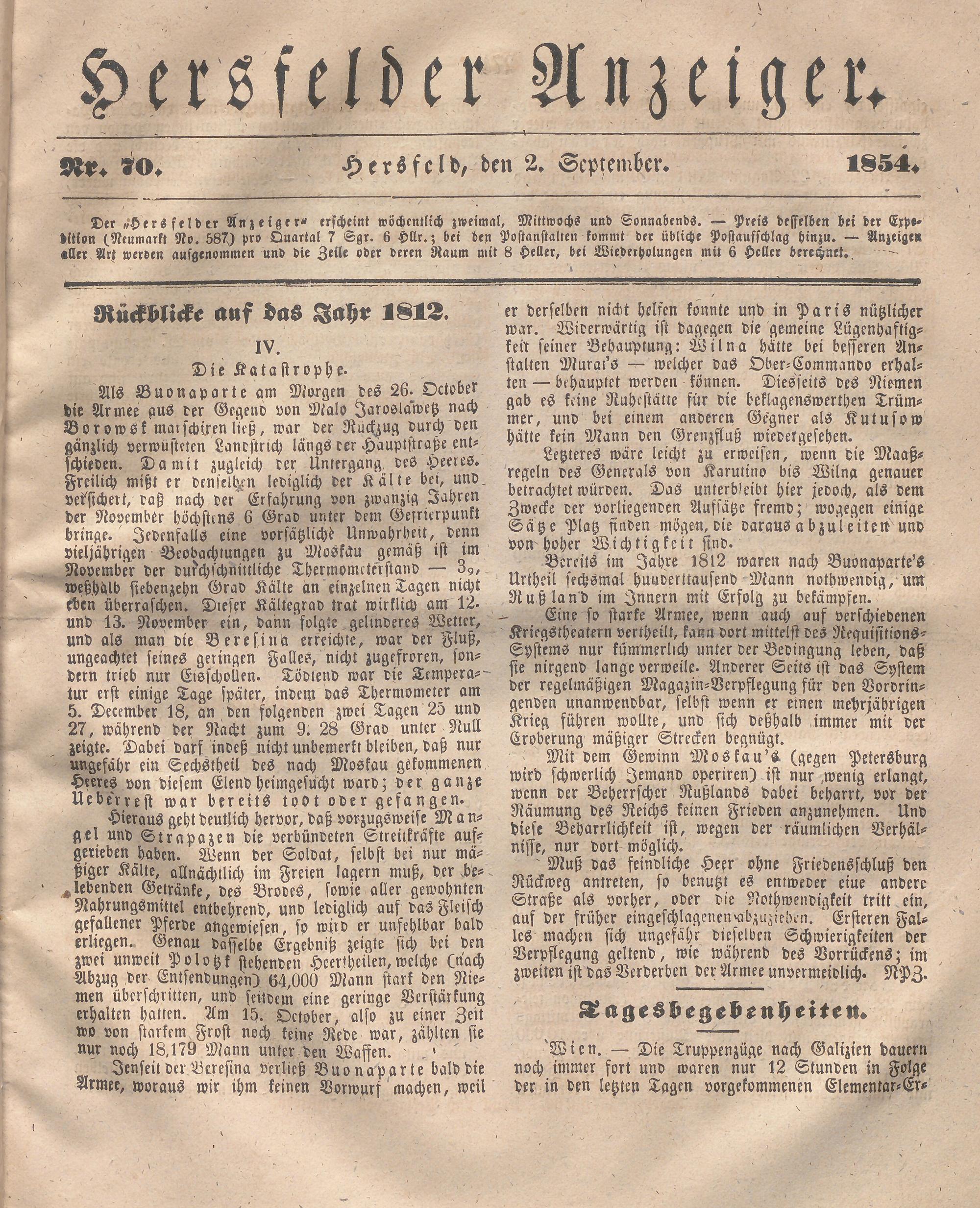 Hersfelder Anzeiger. 1854-1866