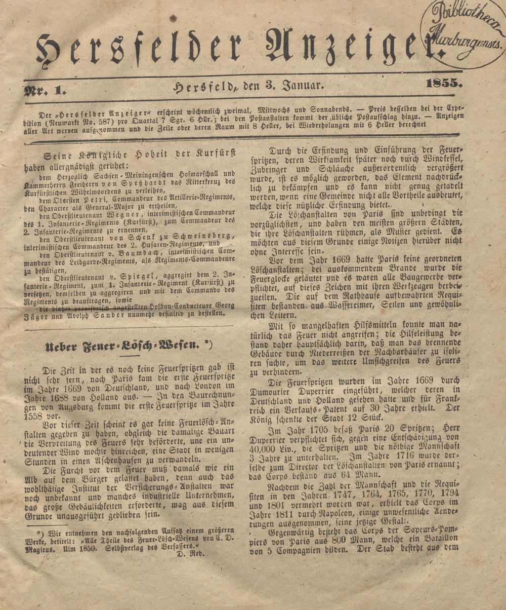 Hersfelder Anzeiger. 1854-1866