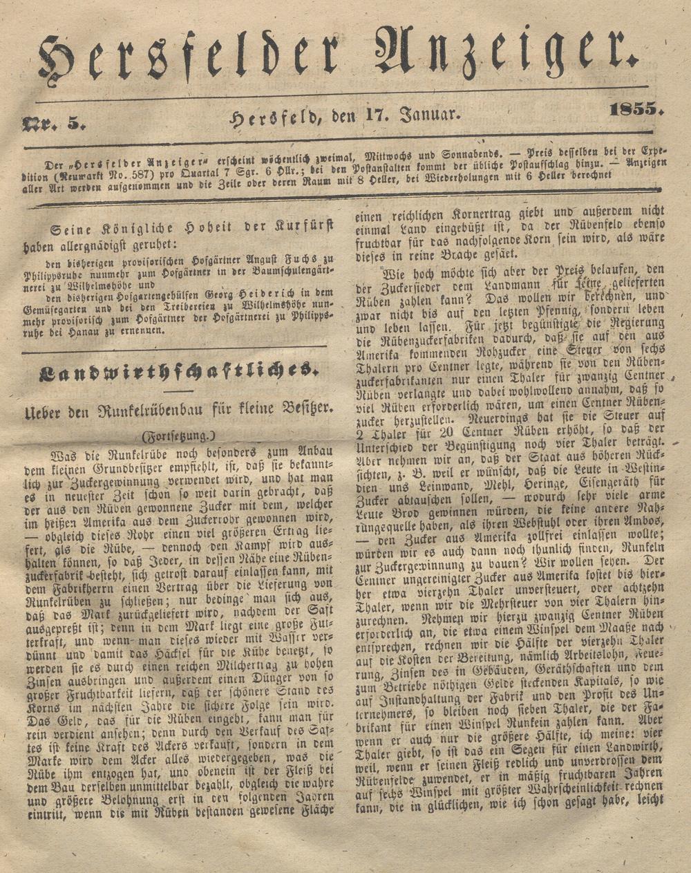 Hersfelder Anzeiger. 1854-1866