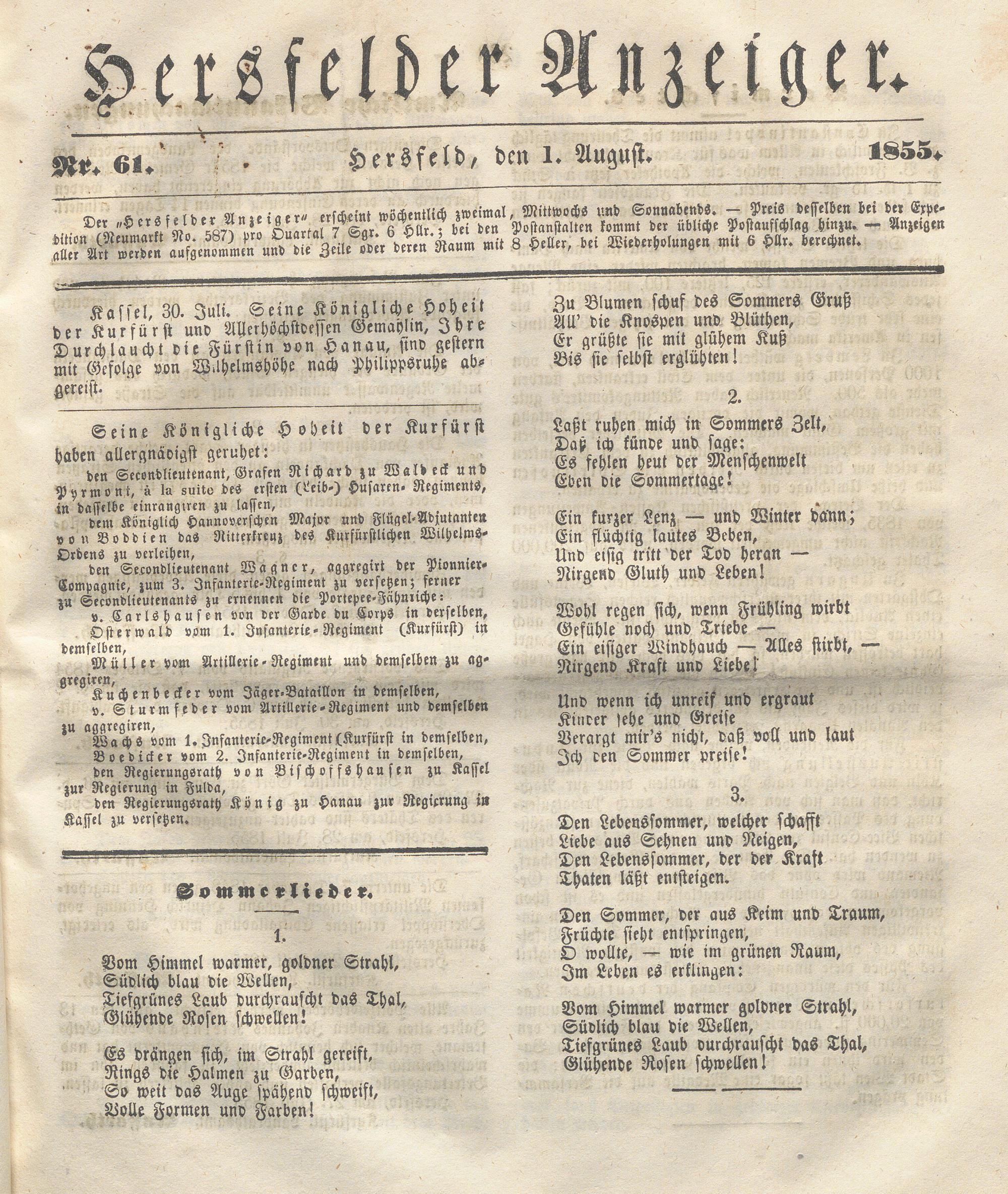 Hersfelder Anzeiger. 1854-1866