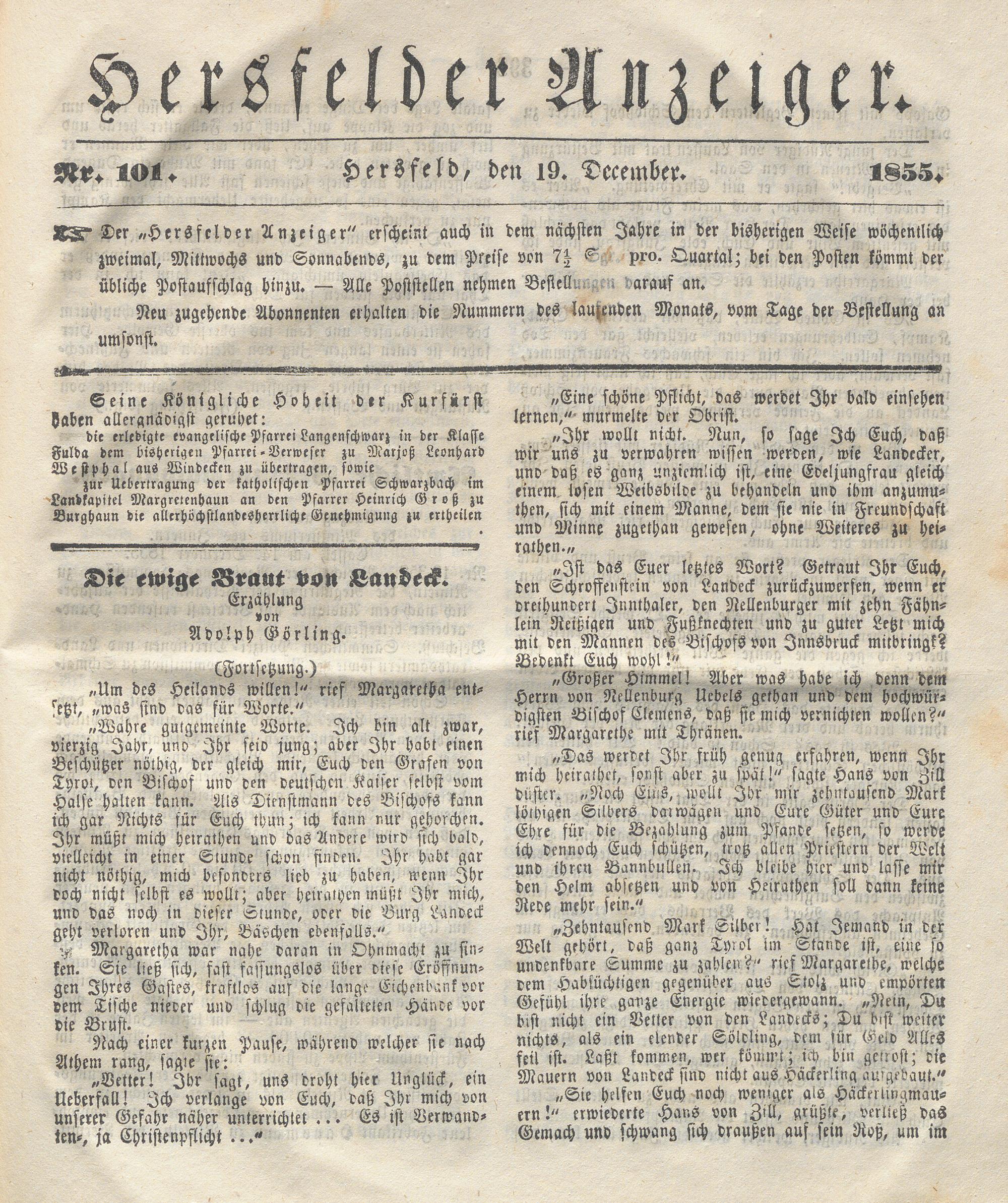 Hersfelder Anzeiger. 1854-1866