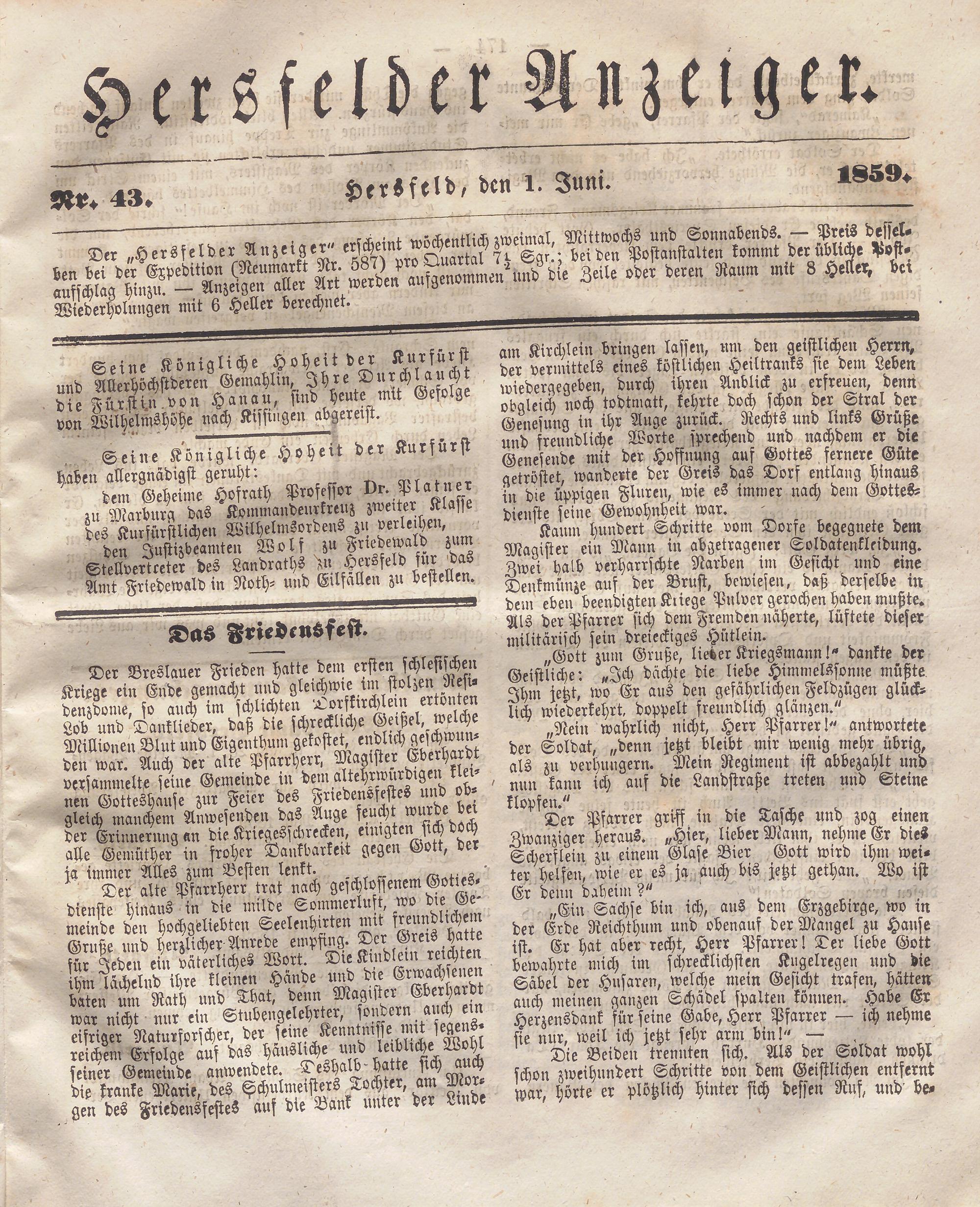 Hersfelder Anzeiger. 1854-1866