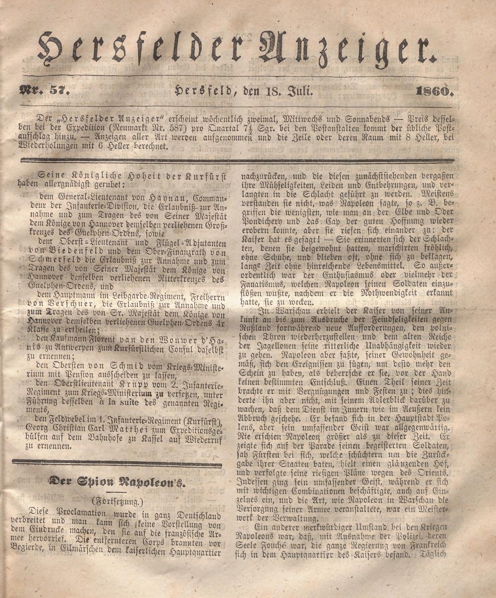 Hersfelder Anzeiger. 1854-1866