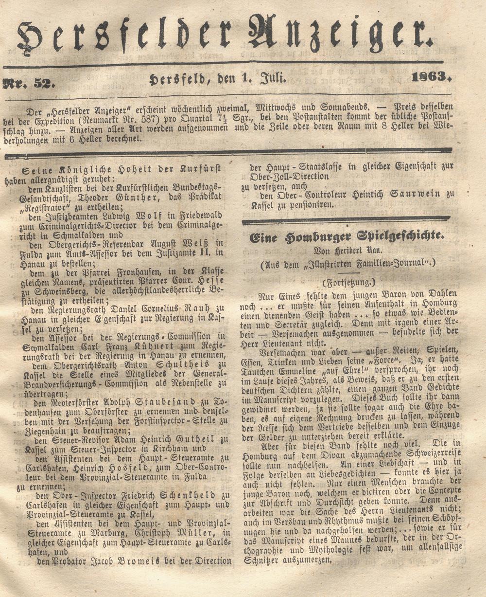 Hersfelder Anzeiger. 1854-1866