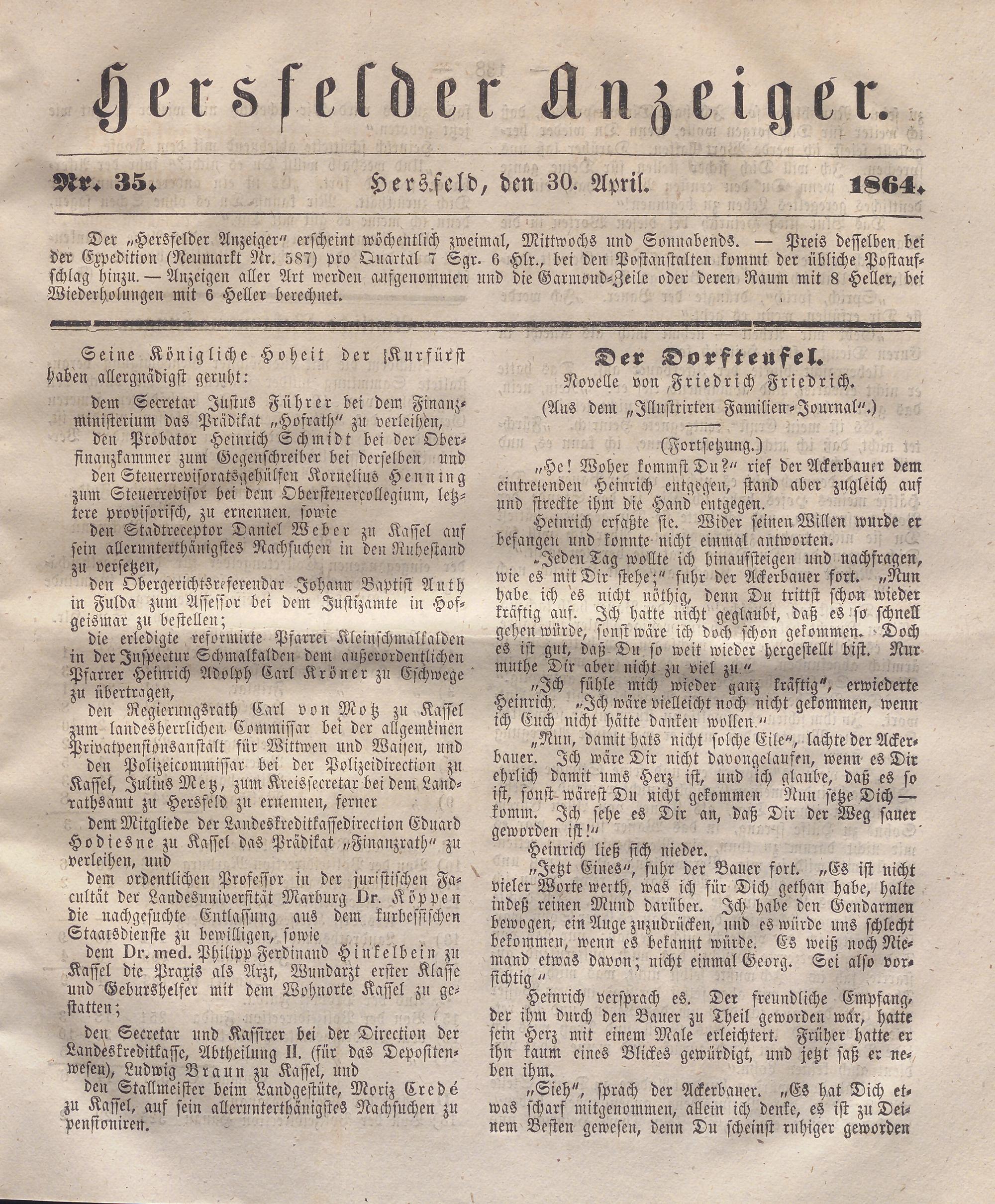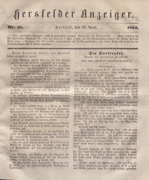Hersfelder Anzeiger. 1854-1866