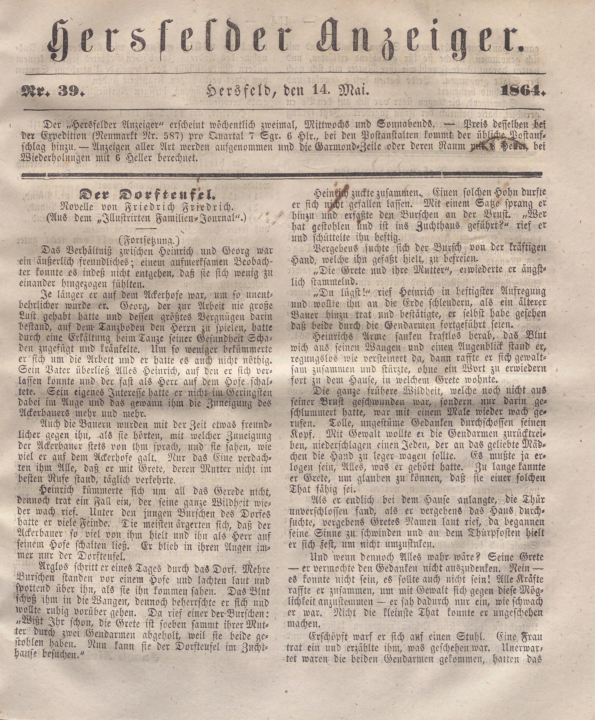 Hersfelder Anzeiger. 1854-1866