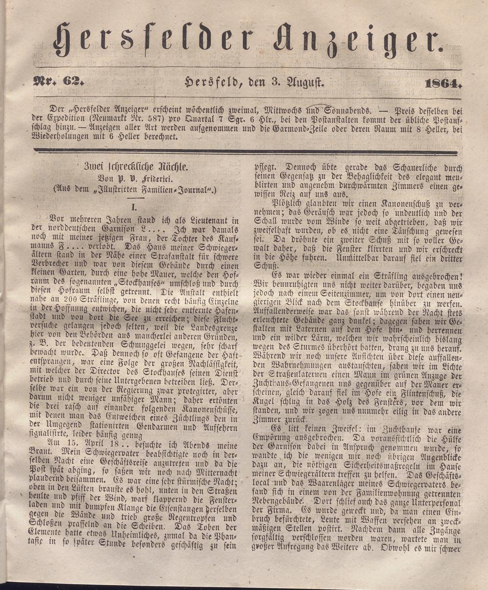 Hersfelder Anzeiger. 1854-1866