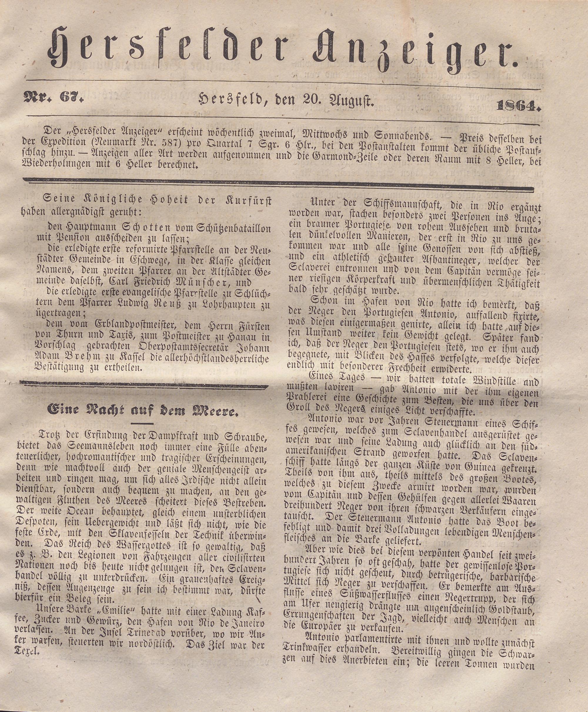 Hersfelder Anzeiger. 1854-1866