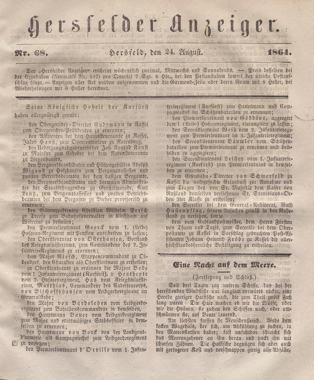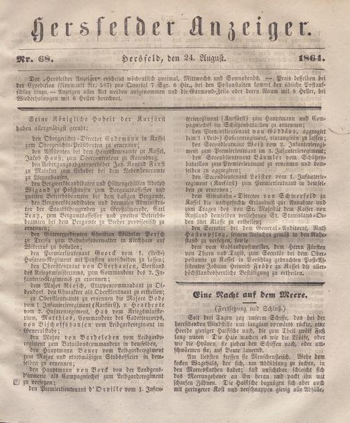 Hersfelder Anzeiger. 1854-1866