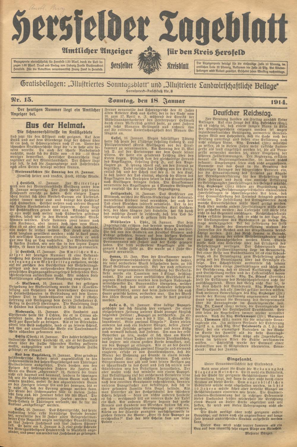 Hersfelder Tageblatt. 1913-1933