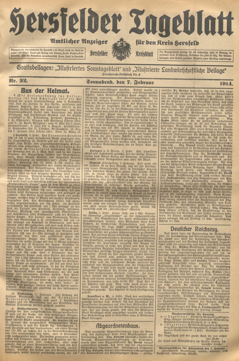 Hersfelder Tageblatt. 1913-1933
