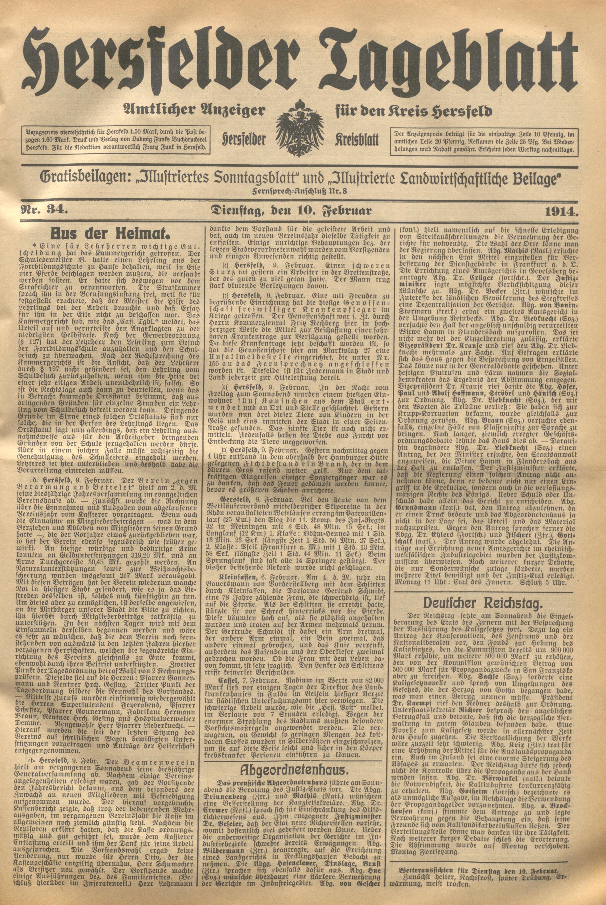 Hersfelder Tageblatt. 1913-1933