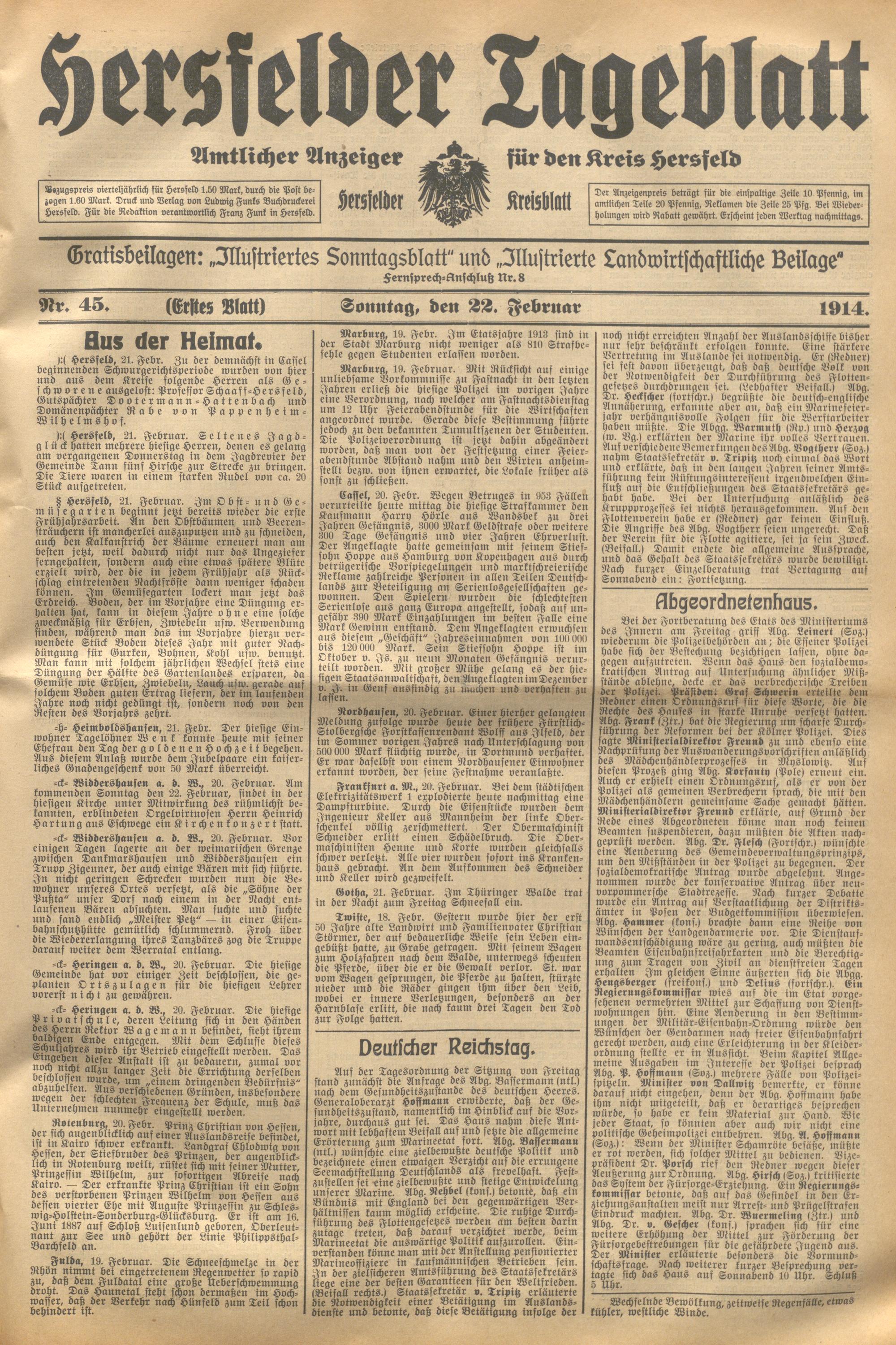 Hersfelder Tageblatt. 1913-1933