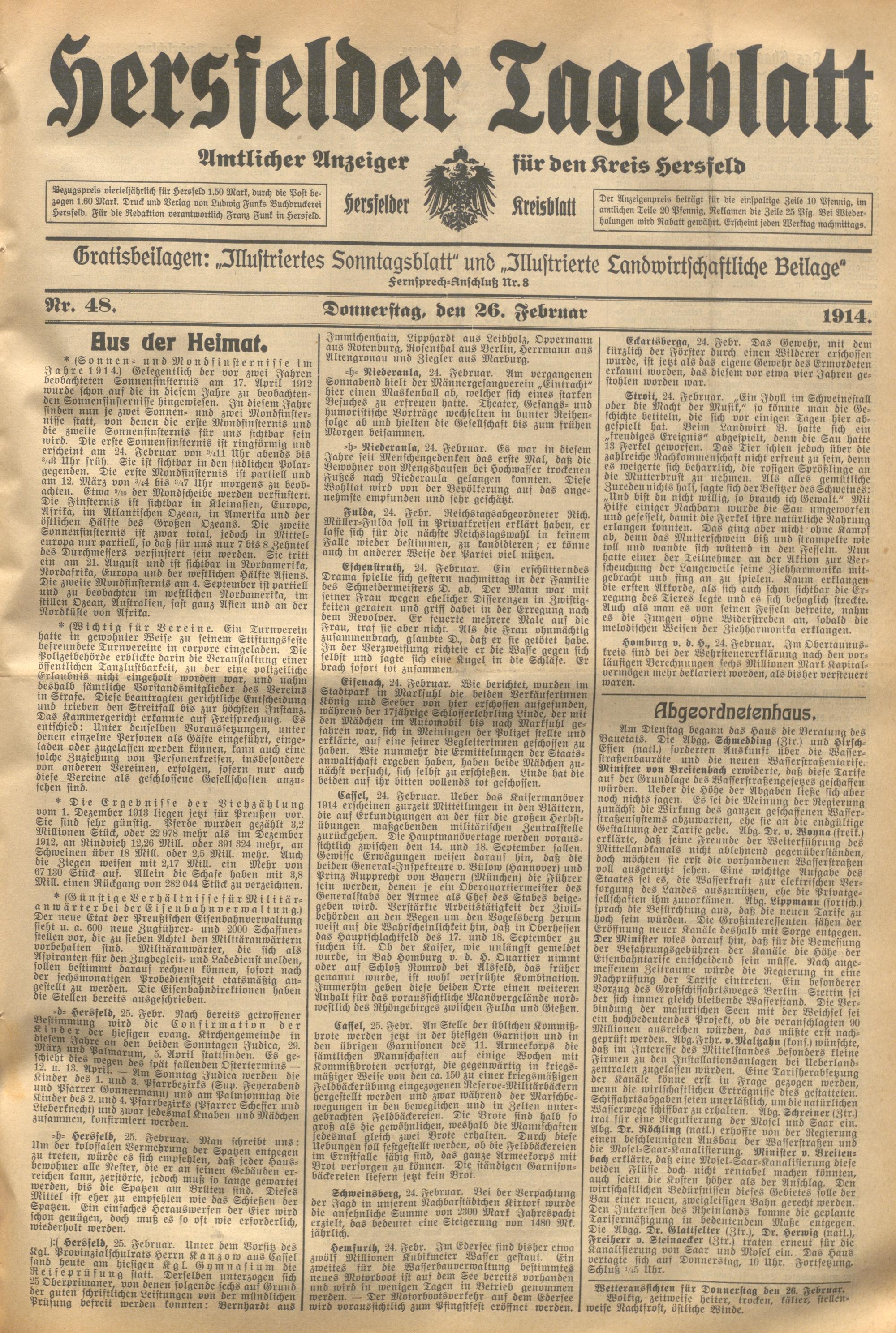 Hersfelder Tageblatt. 1913-1933