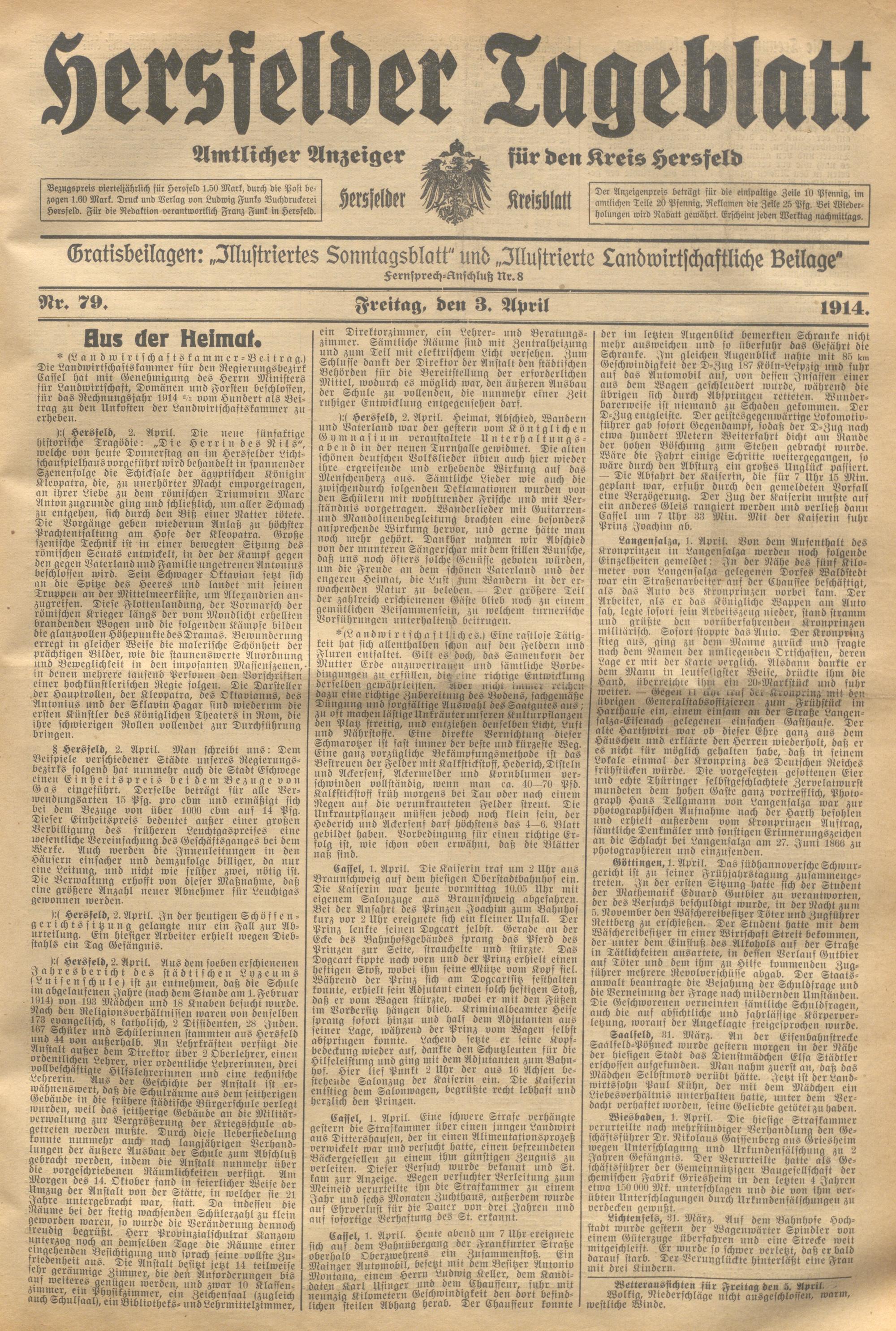 Hersfelder Tageblatt. 1913-1933