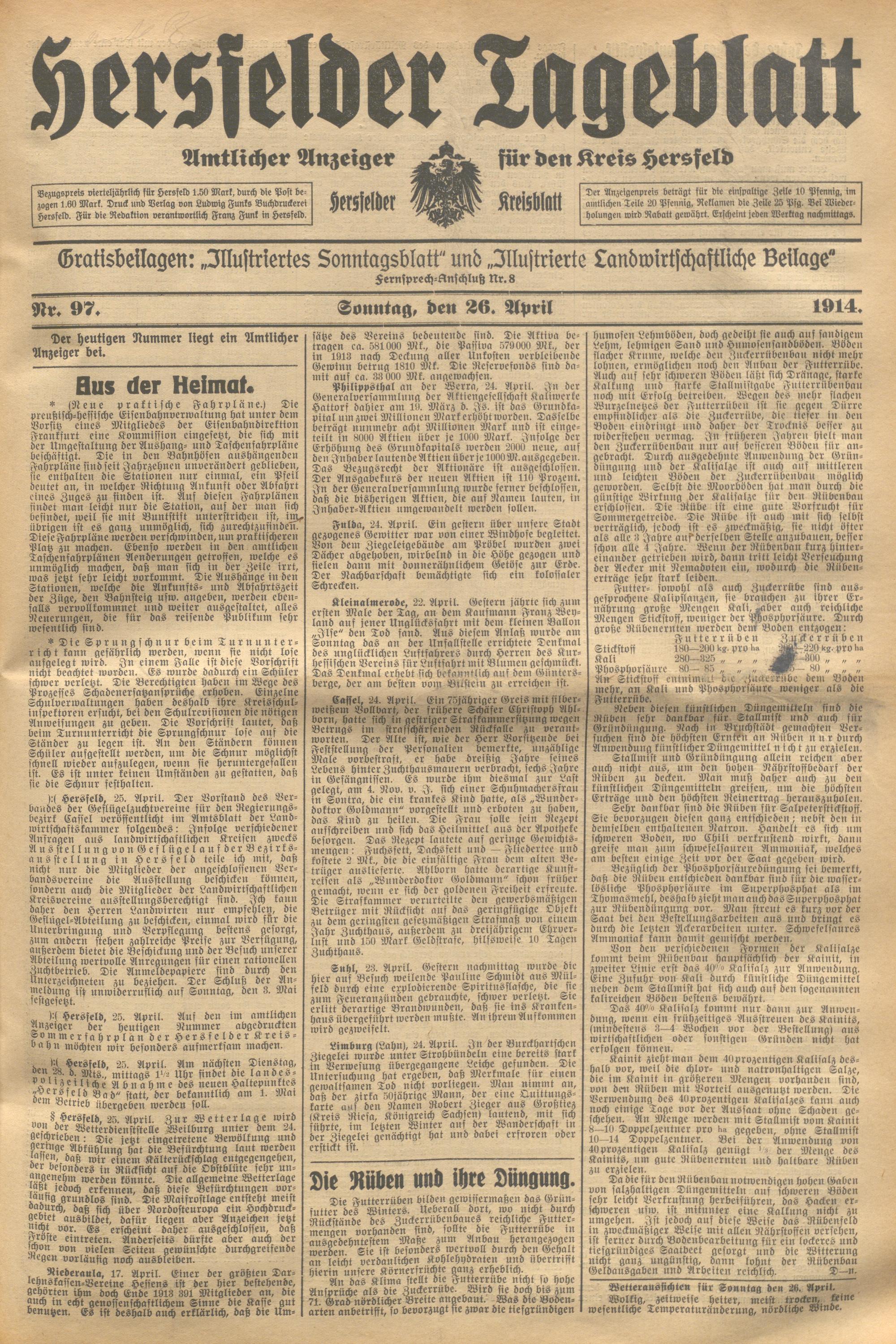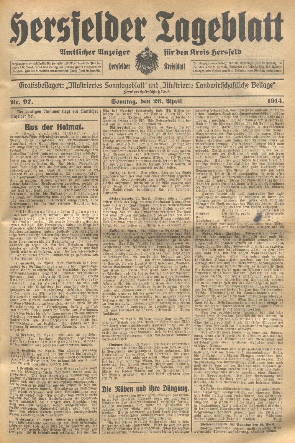 Hersfelder Tageblatt. 1913-1933