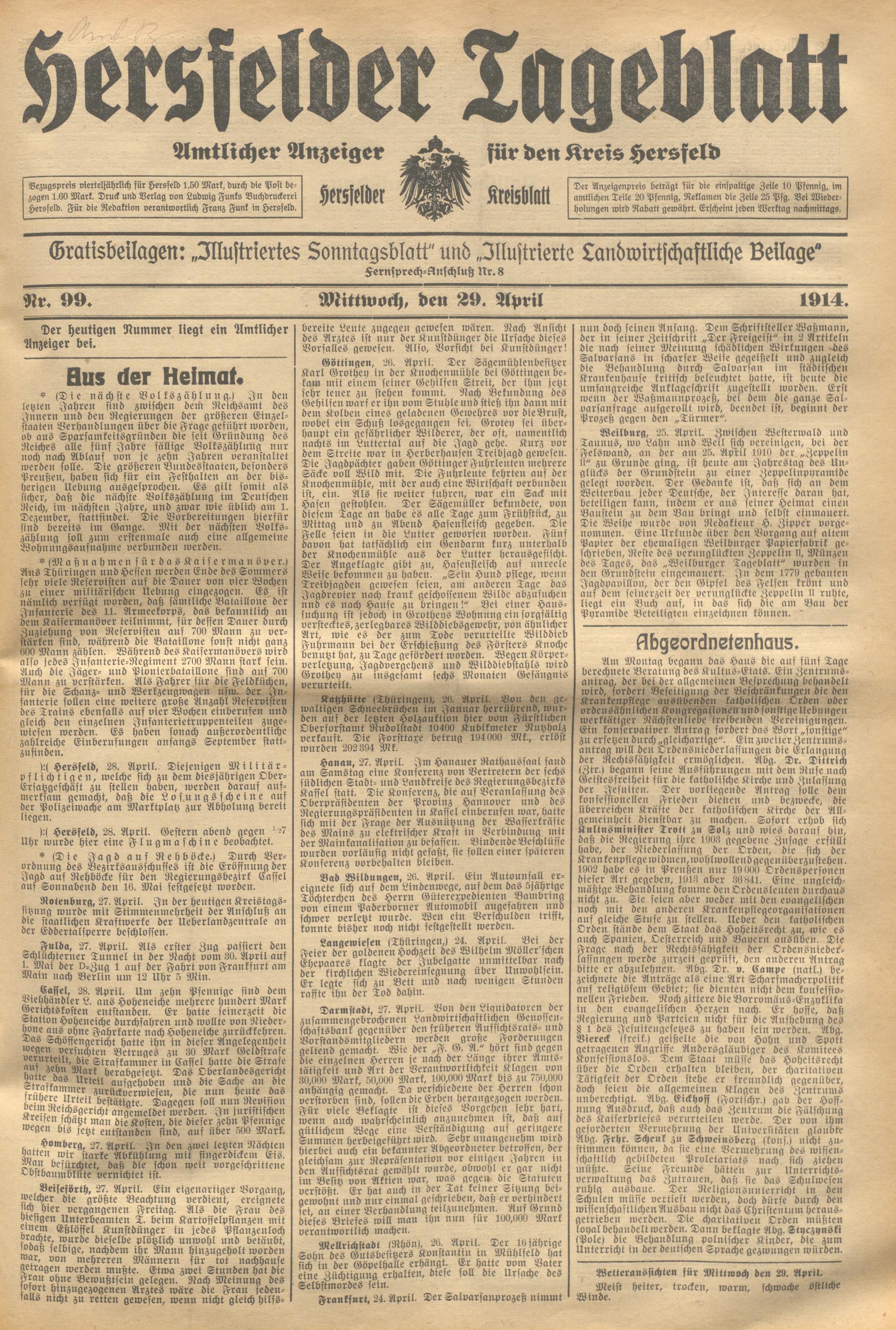 Hersfelder Tageblatt. 1913-1933