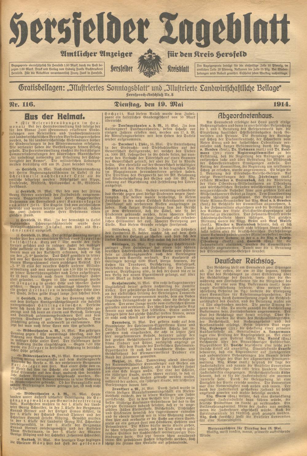 Hersfelder Tageblatt. 1913-1933