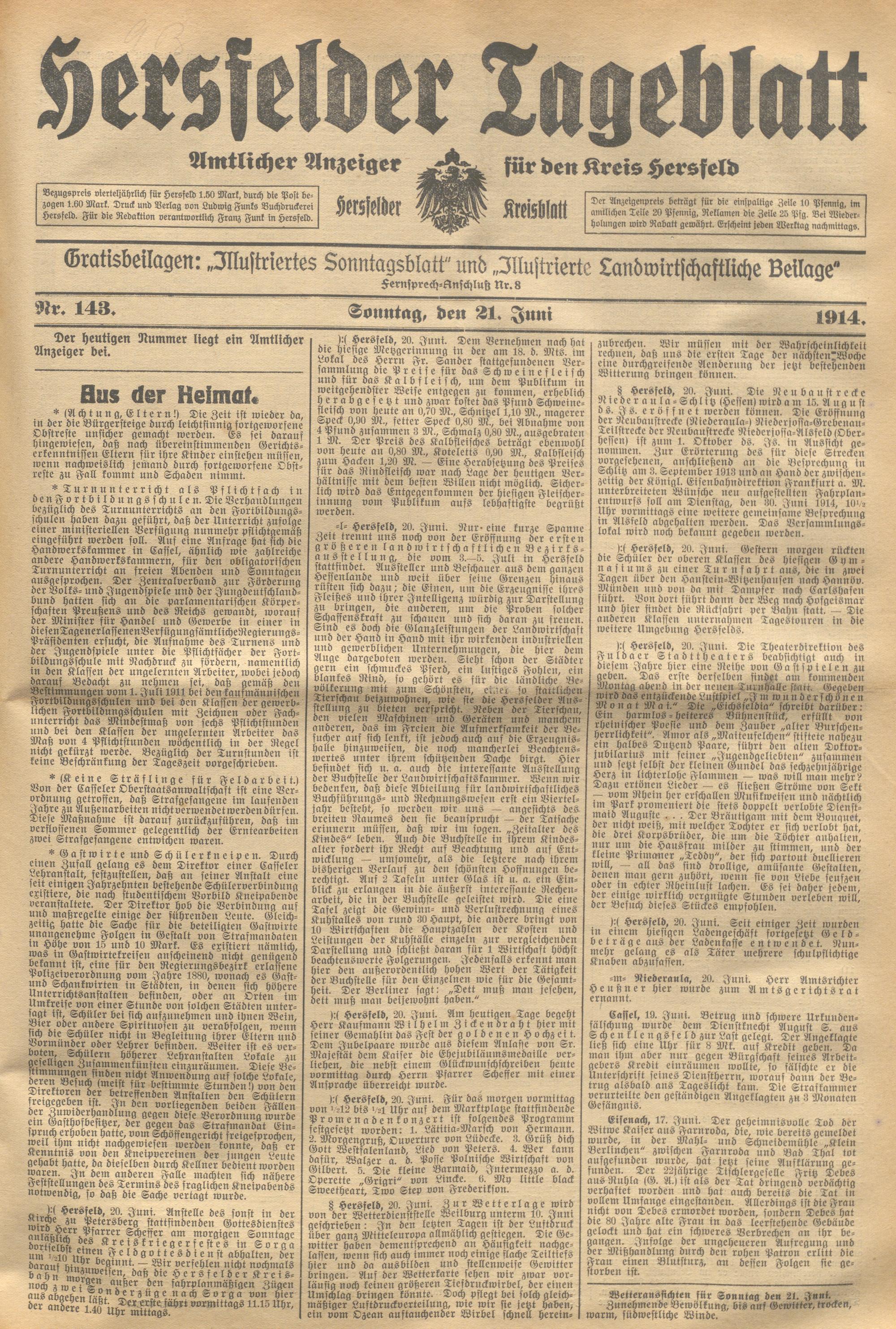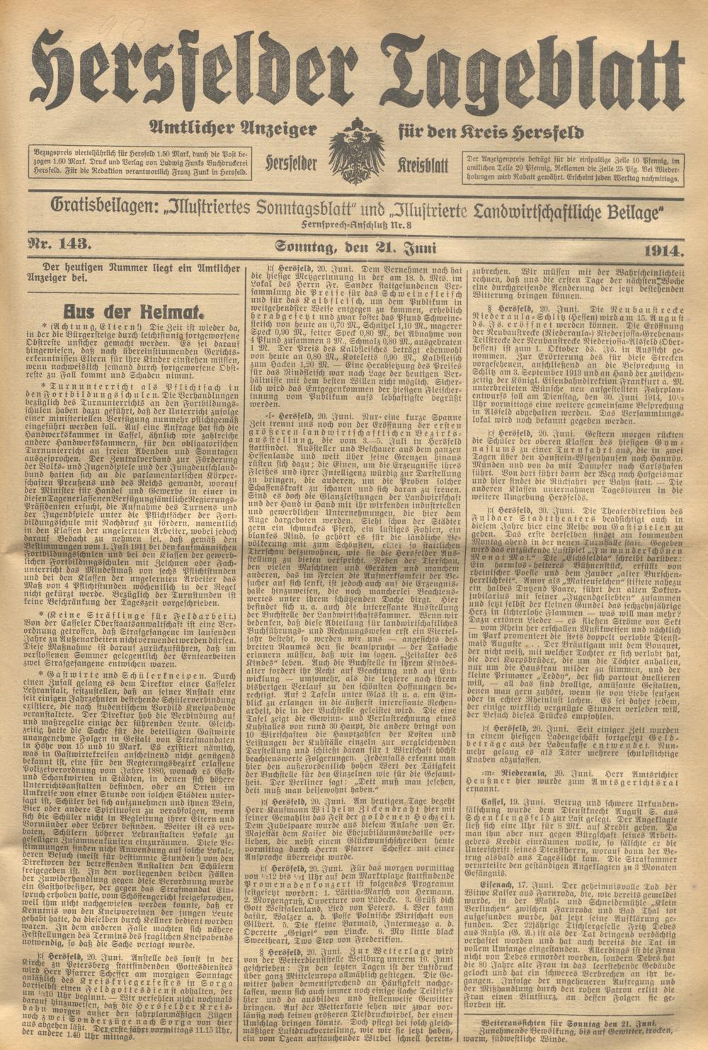Hersfelder Tageblatt. 1913-1933