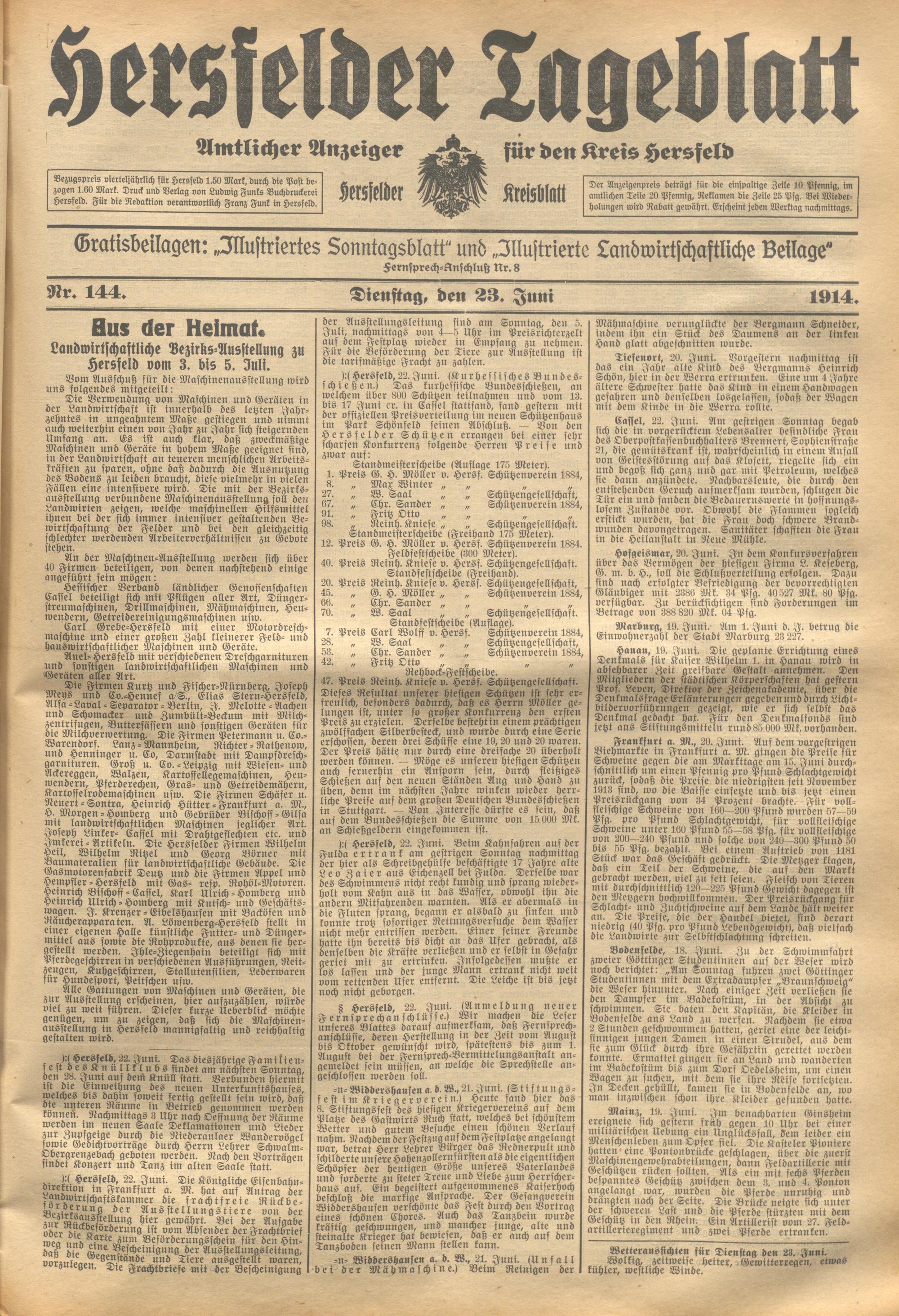 Hersfelder Tageblatt. 1913-1933
