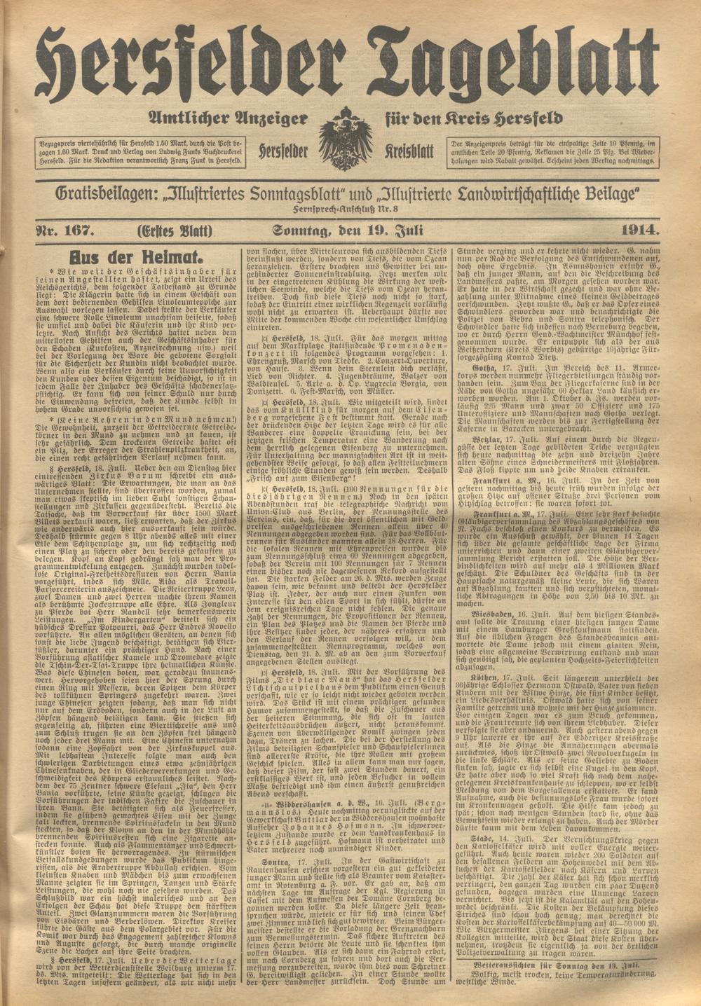 Hersfelder Tageblatt. 1913-1933