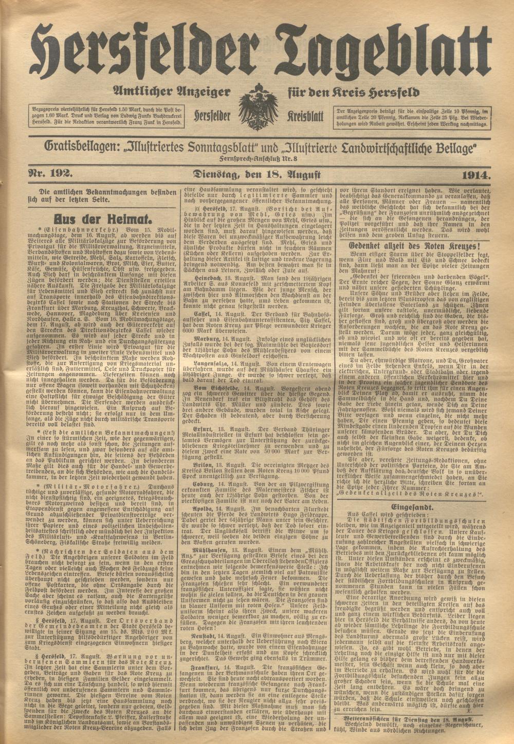 Hersfelder Tageblatt. 1913-1933