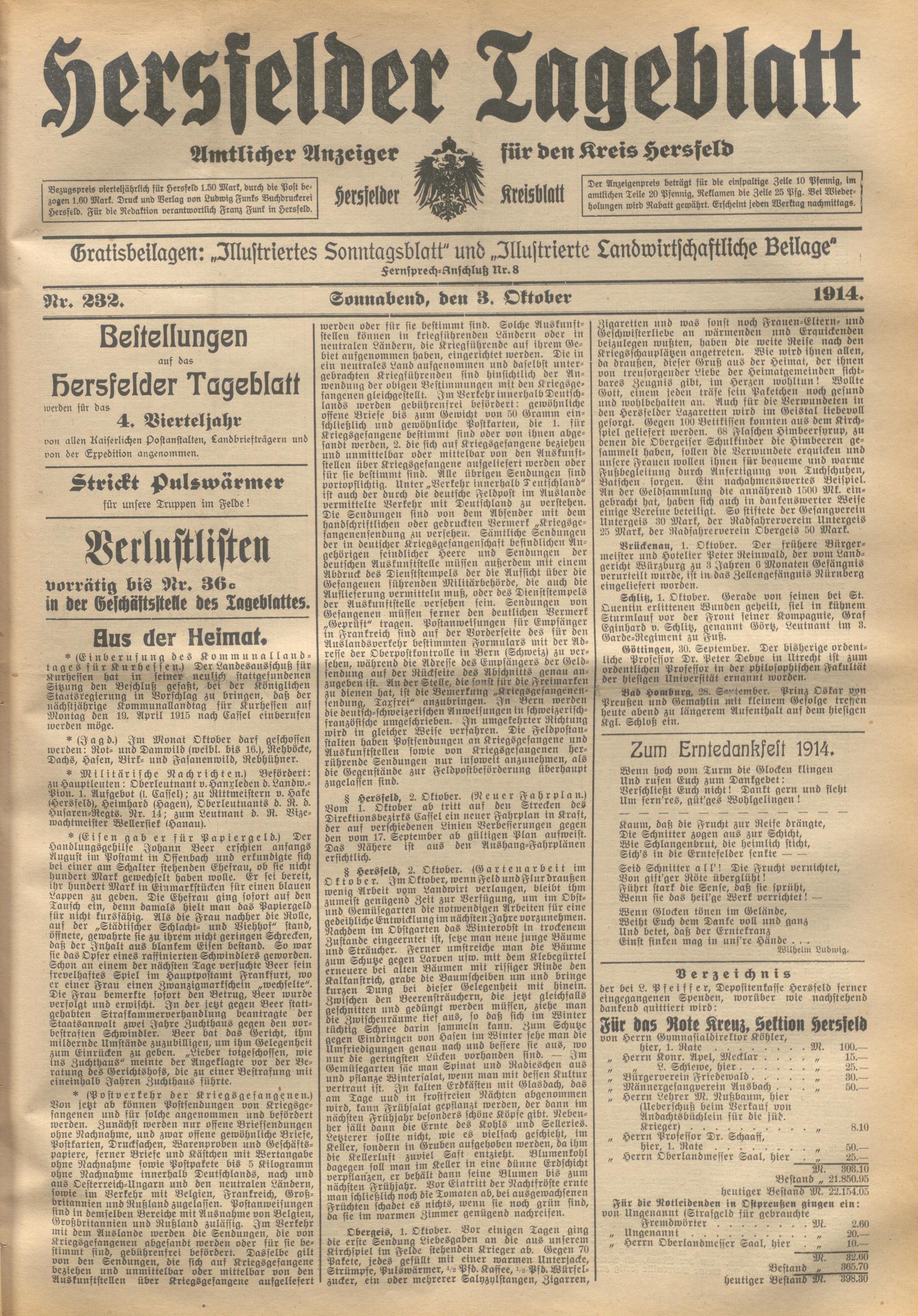 Hersfelder Tageblatt. 1913-1933