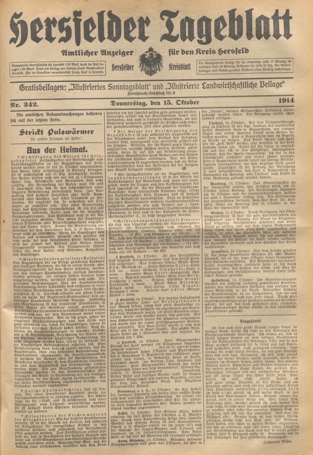 Hersfelder Tageblatt. 1913-1933