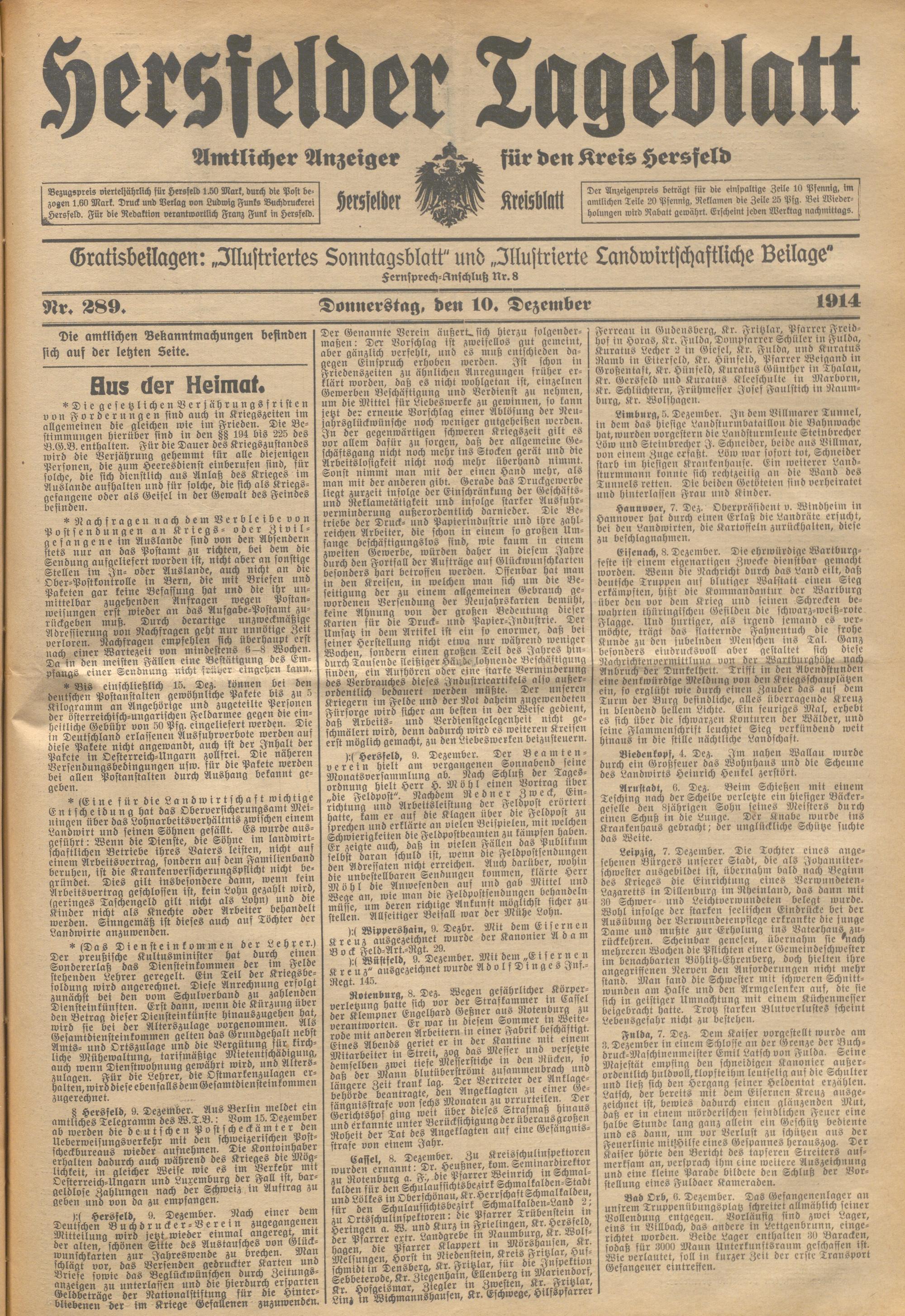 Hersfelder Tageblatt. 1913-1933
