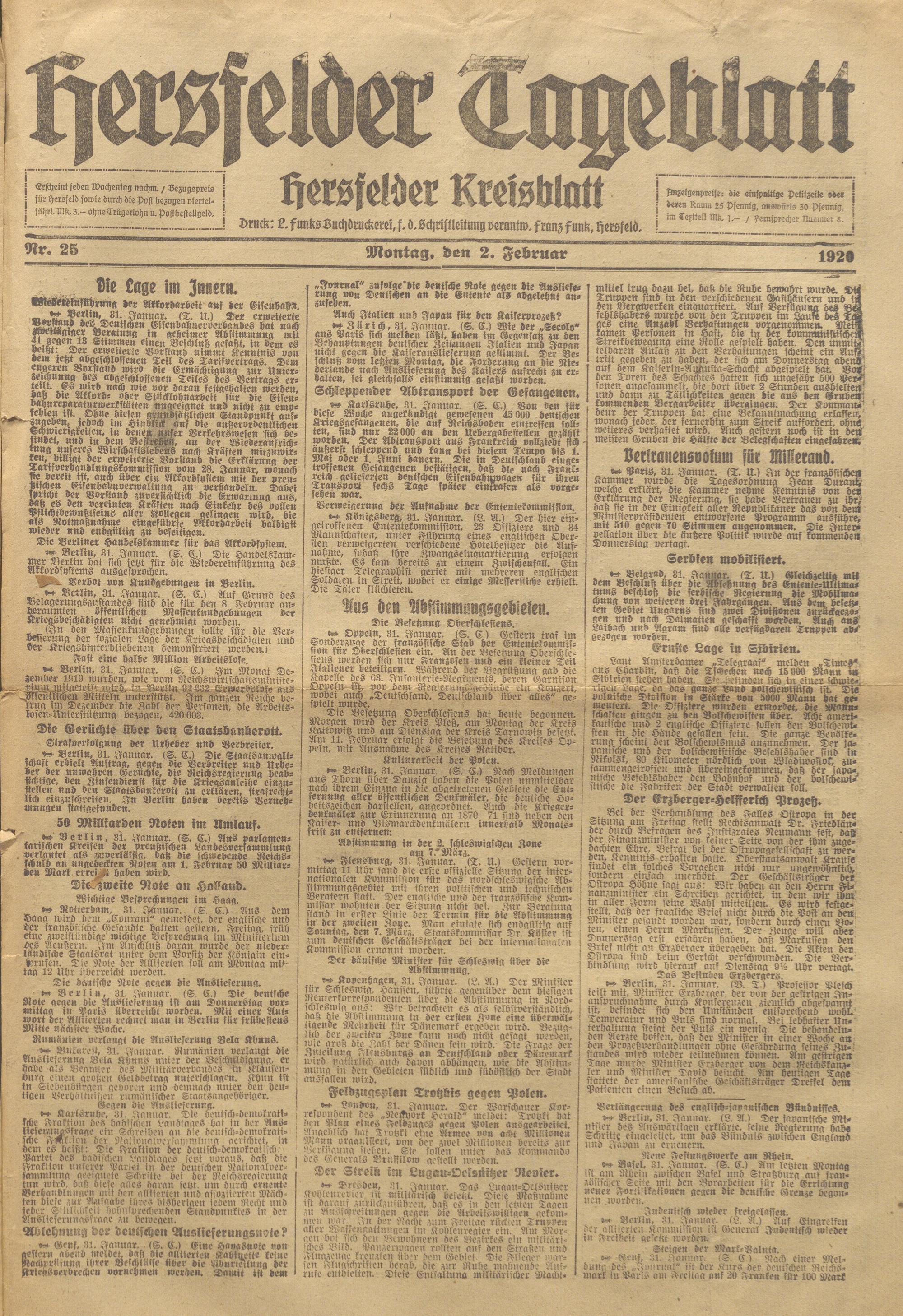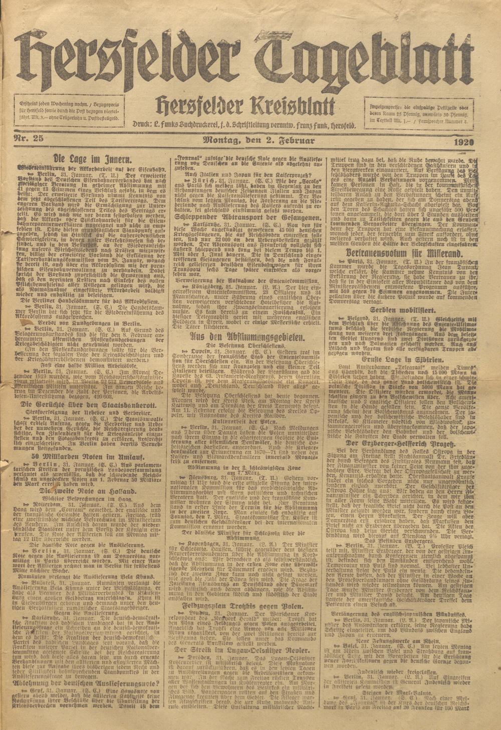 Hersfelder Tageblatt. 1913-1933