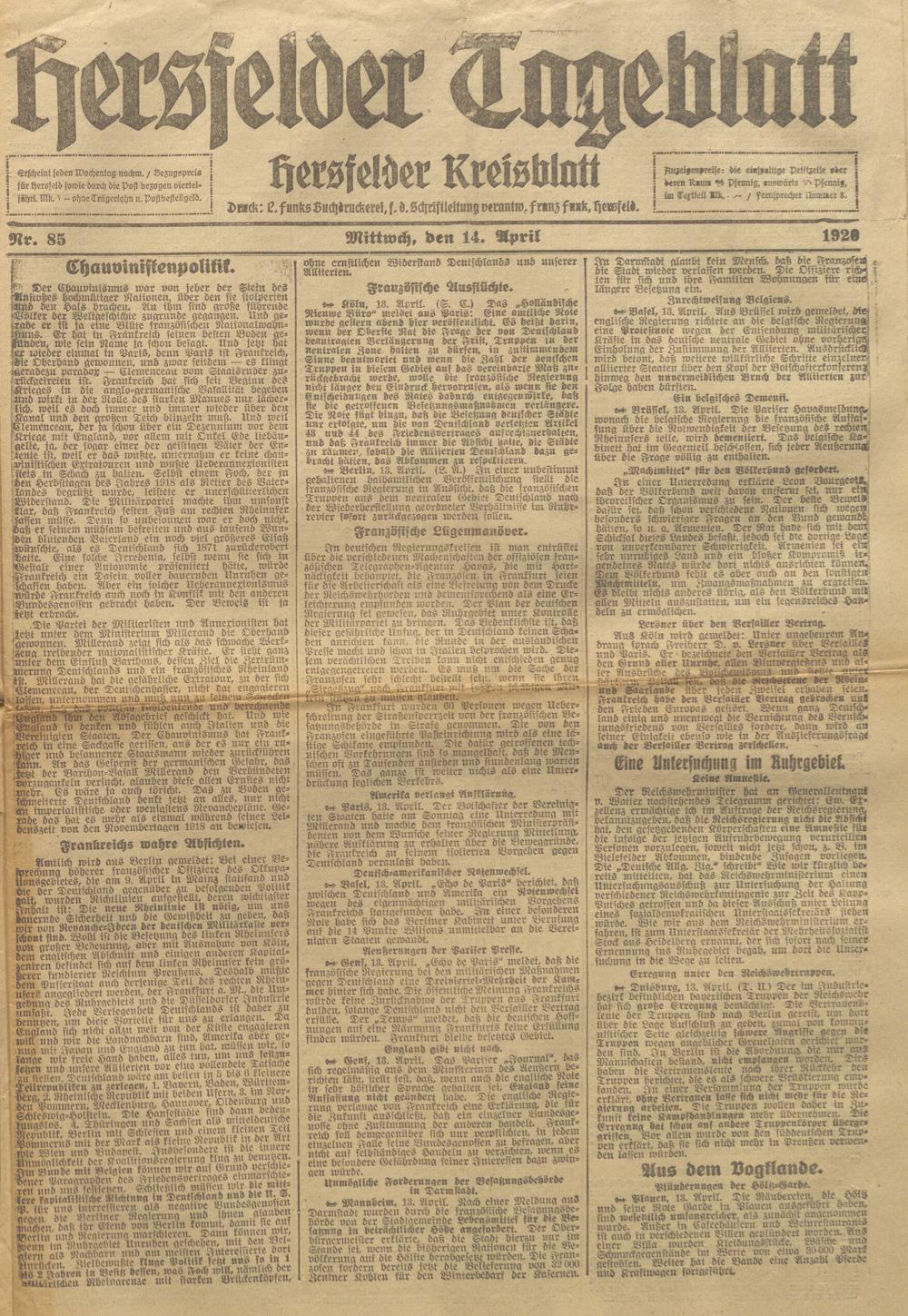 Hersfelder Tageblatt. 1913-1933