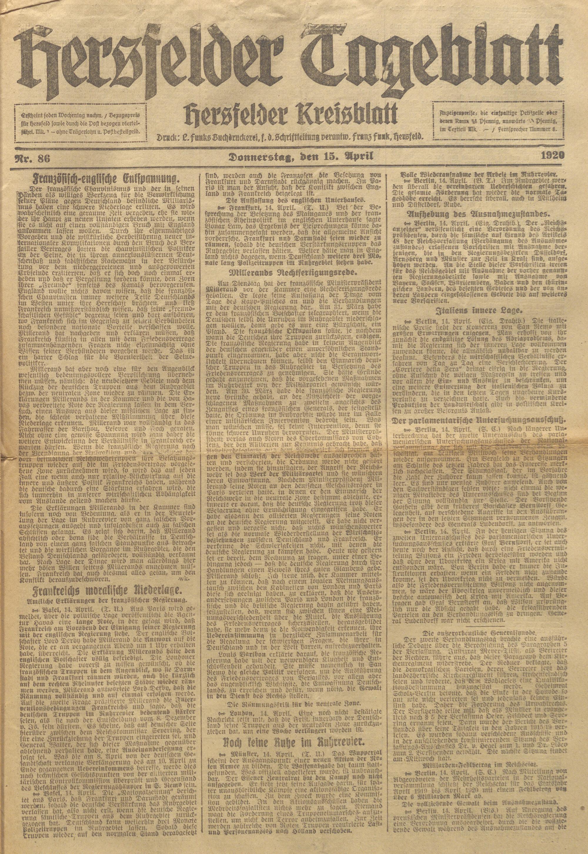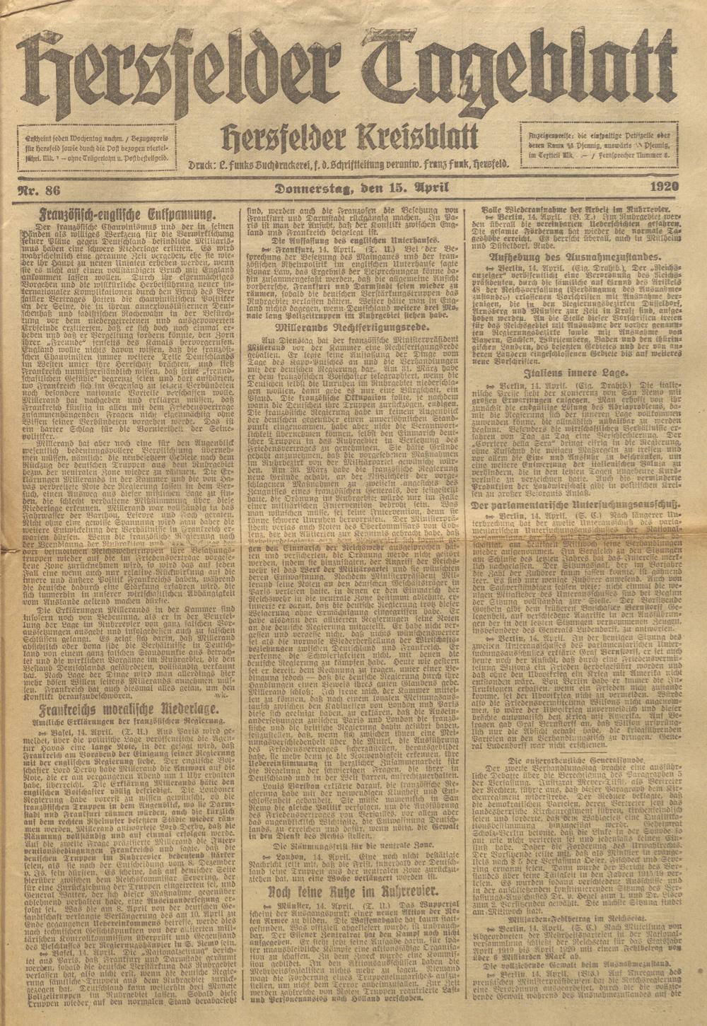 Hersfelder Tageblatt. 1913-1933
